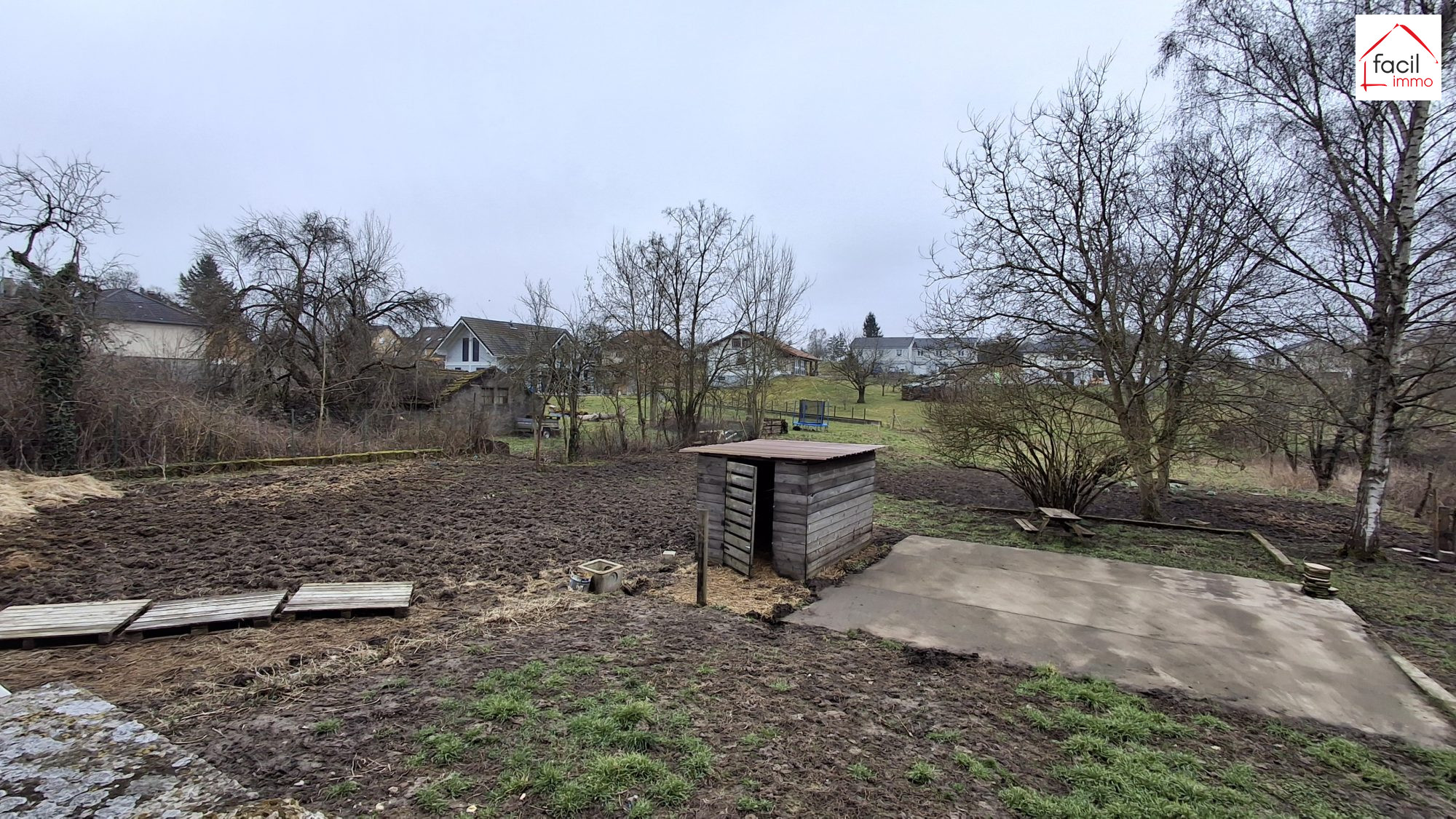 Cave, garages, buanderie, grenier aménageable, terrain de 18 ares.