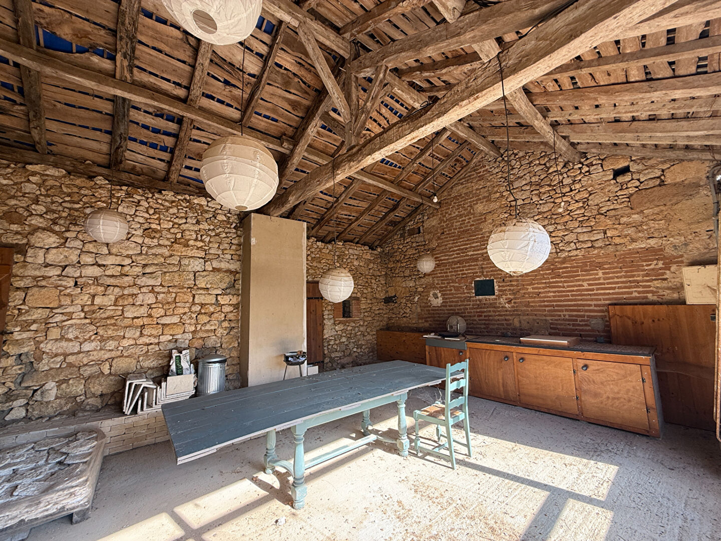 Elle offre le confort actuel et l'authenticité de la pierre avec en rez de chaussée une très belle pièce à vivre de 64 m² comprenant une cuisine équipée, salle d'eau, wc.
