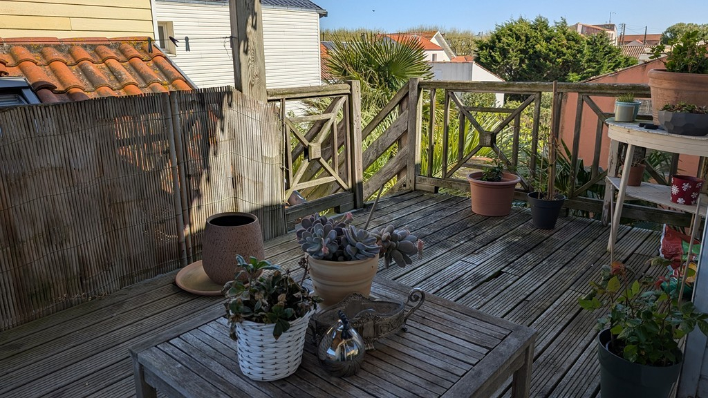 Maison Châtelaillonnaise vue mer actuellement aménagée en 3 logements : 2 T2 meublés et loués actuellement 630 Euro et 530 Euro . Maison composée d'une entrée, grand séjour salon avec terrasse vue mer, cuisine US équipée, 3 chambres dont une avec sa salle d'eau, salle de bains, 2 wc, buanderie. Grenier aménageable de 60 m2. Parking. Jardinet et terrasses.
