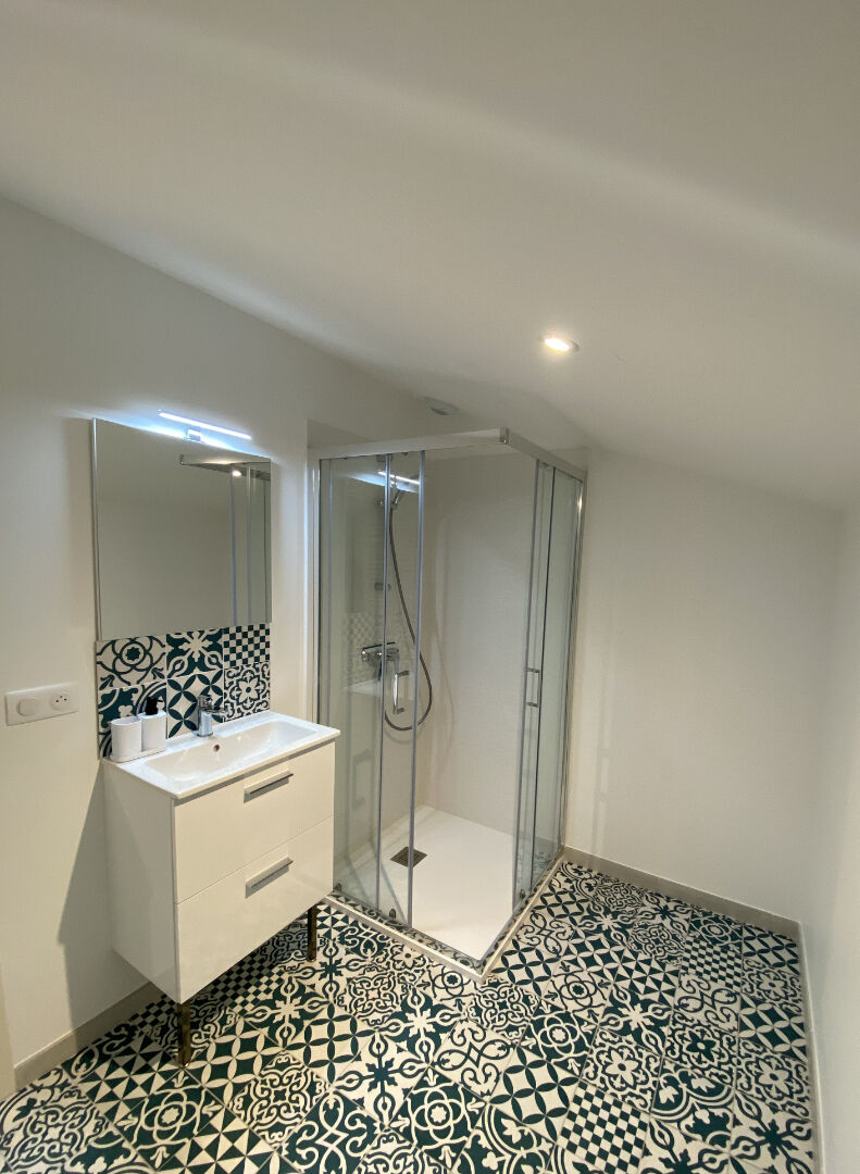 D'une surface d'environ 100 m², elle offre au rez-de-chaussée une chambre avec sa salle d'eau privative. A l'étage trois chambres supplémentaires ainsi qu'une seconde salle d'eau.