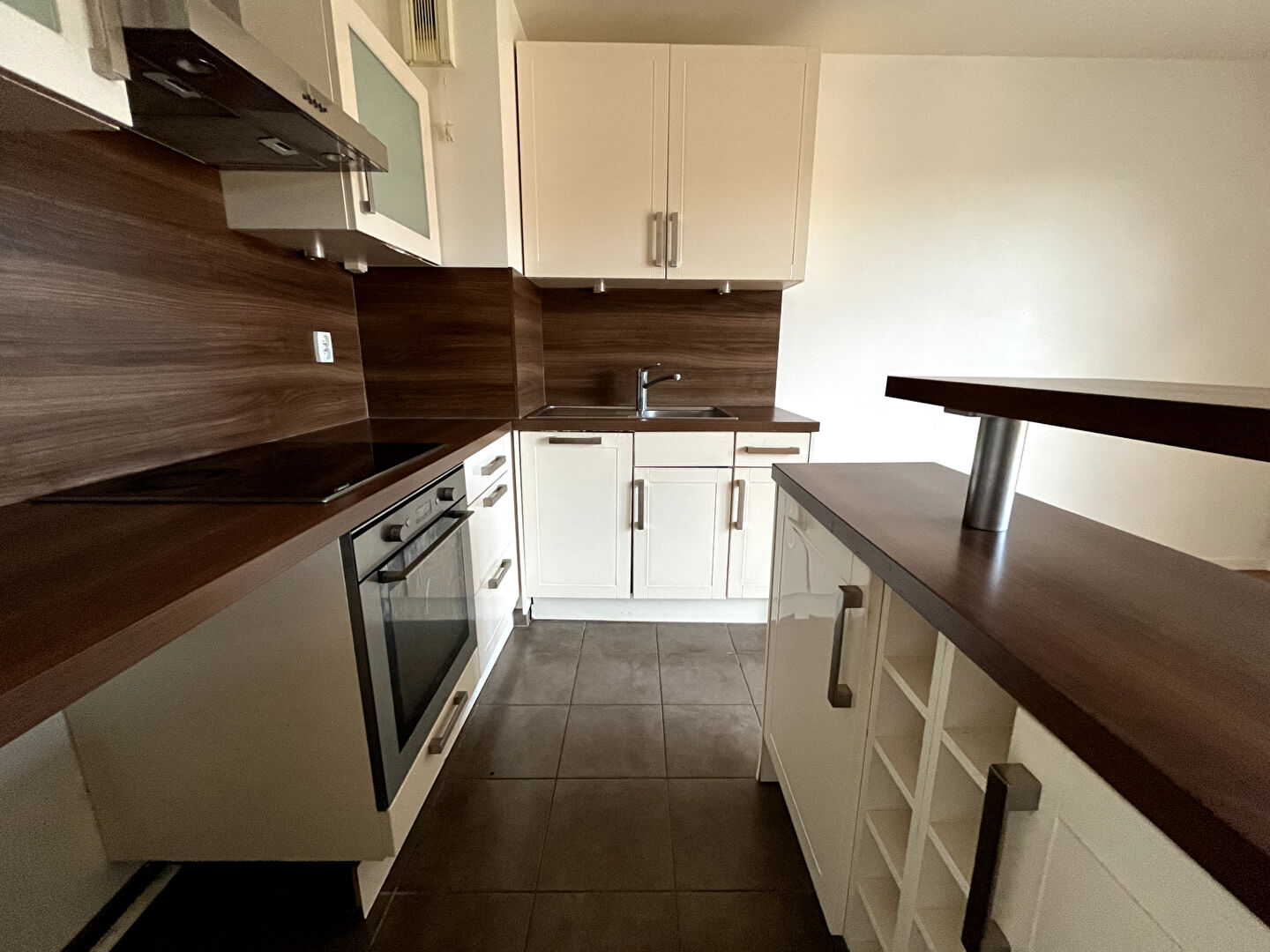 L'appartement se compose d'une entrée fonctionnelle acec un grand placard, d'un séjour lumineux avec un balcon et une cuisine américaine aménagée et entièrement équipée (plaque, hotte, four, lave-vaisselle), idéal pour la vie quotidienne.