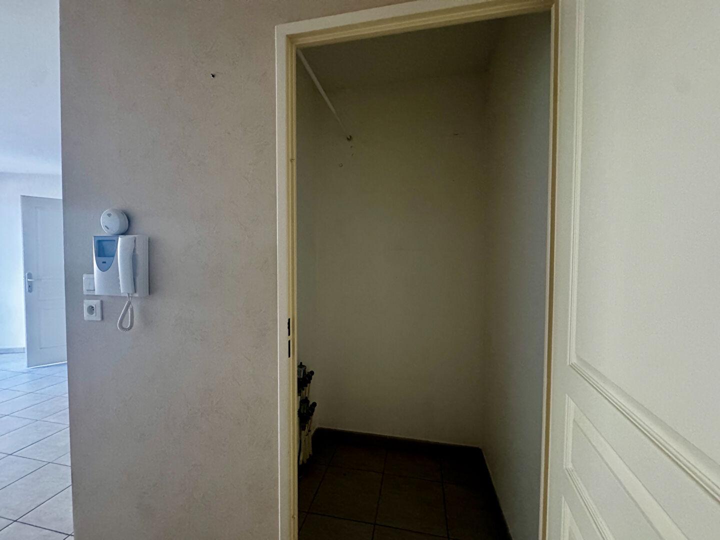 Ce bien se compose d'une entrée fonctionnelle avec grand placard de rangement. La pièce de vie de 20 m², avec cuisine à aménager ouverte sur le salon, offre un accès direct à une terrasse de 8 m², agréable et bien proportionnée.