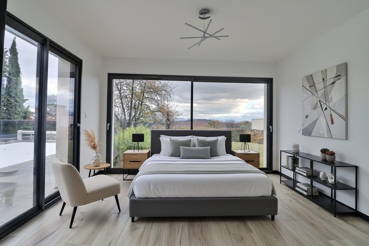 PONT DU CHÂTEAU, Grande villa récente ( 2022) de 340m², 260 m² habitable chauffés comprenant: entrée avec rangements, grande pièce de vie avec cuisine équipée ( 87 m²)ouverte donnant sur terrasse, jardin et piscine chauffée ( 7X4) , une suite parentale avec dressing et salle de bains privative, trois chambres avec placards, salle de bains avec douche et baignoire, bureau avec placard ( pouvant faire office de chambre) ,grand sous-sol avec garage double , buanderie , salle de jeux, bureau, chambre forte, pool house , troisième garage , petite dépendance, chauffage par pompe à chaleur air eau ( plancher chauffant) , ballon thermodynamique, climatisation, trés bonne exposition, lumineuse avec grande baies vitrées sur la totalité des pièces avec accès sur terrasse et jardin, portail automatique, terrain d'environ 1272 m², secteur calme , toutes commodités à proximité ( centre ville, écoles, commerces, transport), DPE B