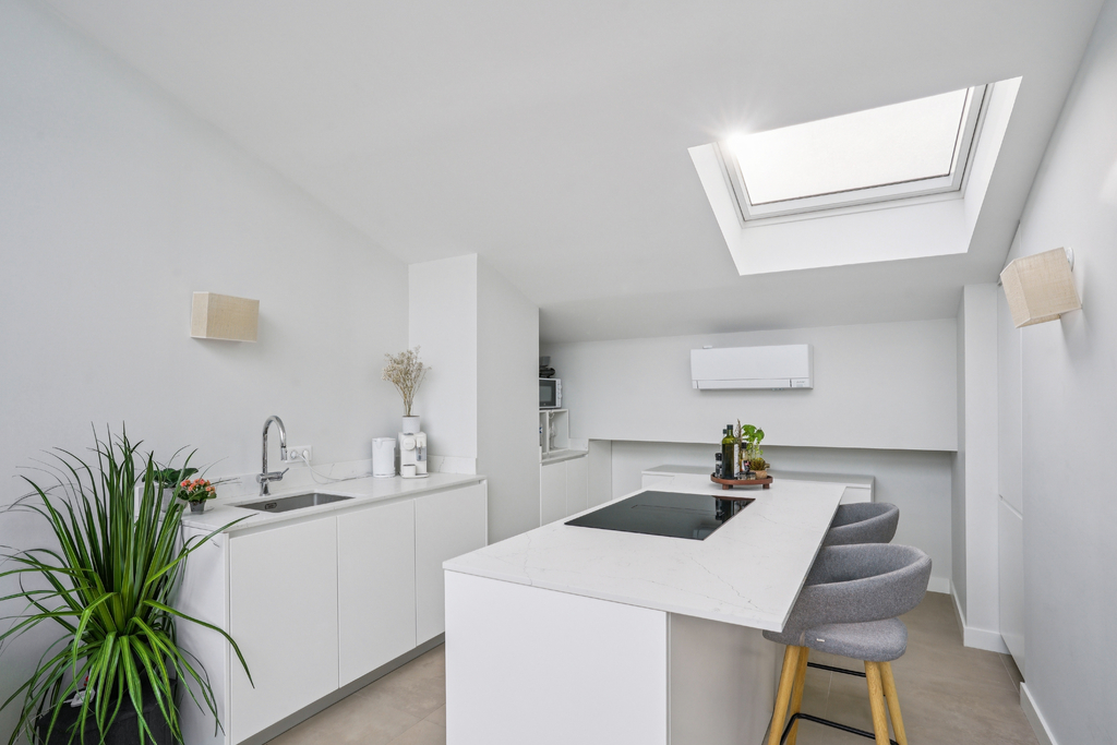 Les prestations sont remarquables : climatisation individuelle, rénovation intégrale et haut de gamme en 2023, matériaux raffinés, aménagements sur mesure et luminosité exceptionnelle grâce à la verrière. Le confort énergétique est l'un des atouts majeurs du bien, avec une performance DPE B, rare à Paris. L'immeuble lui-même possède un caractère unique : sa structure, issue des échafaudages de la Tour Eiffel, est classée monument historique.