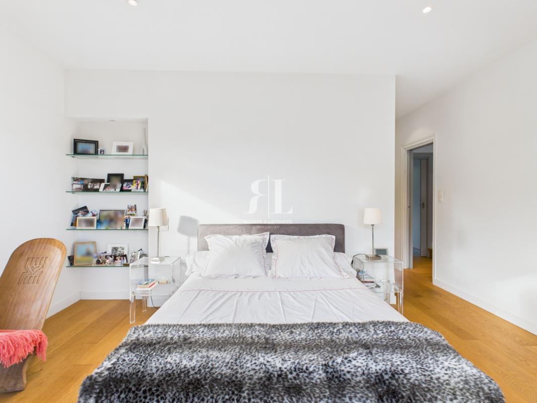Dès l'entrée, la pièce de vie impressionne par ses volumes, sa cheminée contemporaine et ses larges ouvertures qui baignent l'ensemble de lumière. L'espace se prolonge naturellement vers la terrasse bien exposée et le jardin paysager, offrant une continuité parfaite entre intérieur et extérieur.
