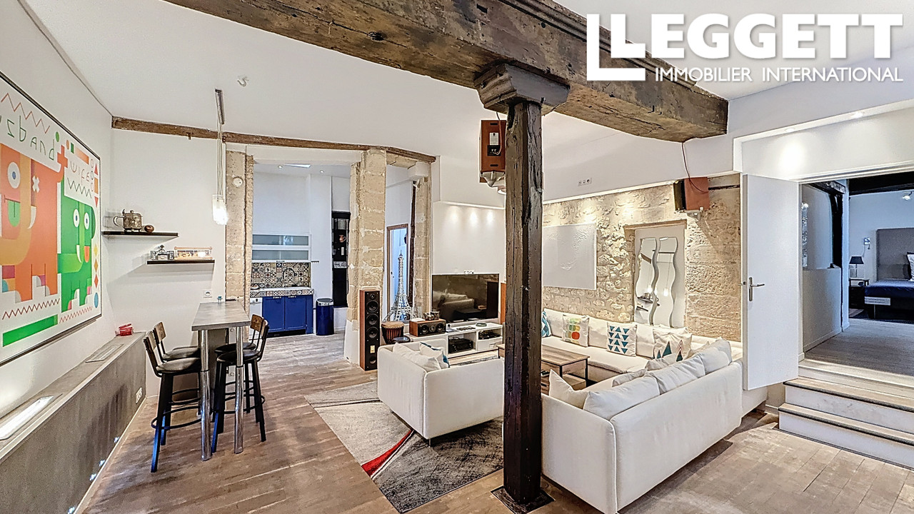 A41377LUM75 - Au coeur du 4e arrondissement, rue des Lombards, ce loft de 90 m² au calme d'une cour intérieure bénéficie d'une affectation commerciale à usage d'habitation. L'ensemble offre une configuration ouverte avec hauteur sous plafond, poutres centenaires, murs en pierre et esprit atelier. L'espace de vie se prolonge vers la cuisine située au fond du loft, donnant accès au WC, à la buanderie et à l'open space principal. La chambre dispose d'un bureau intégré et d'une ouverture vers un petit extérieur privatif. Un dressing attenant avec fenêtre peut accueillir un espace bébé ou être transformé en petite chambre enfant. Une grande salle de bains avec baignoire d'angle complète l'aménagement. Adapté à une résidence principale, un pied-à-terre ou un investissement locatif (meublé longue durée ou saisonnier), ce loft offre une adresse centrale proche Centre Pompidou, métro Châtelet, commerces, restaurants et lieux culturels.
