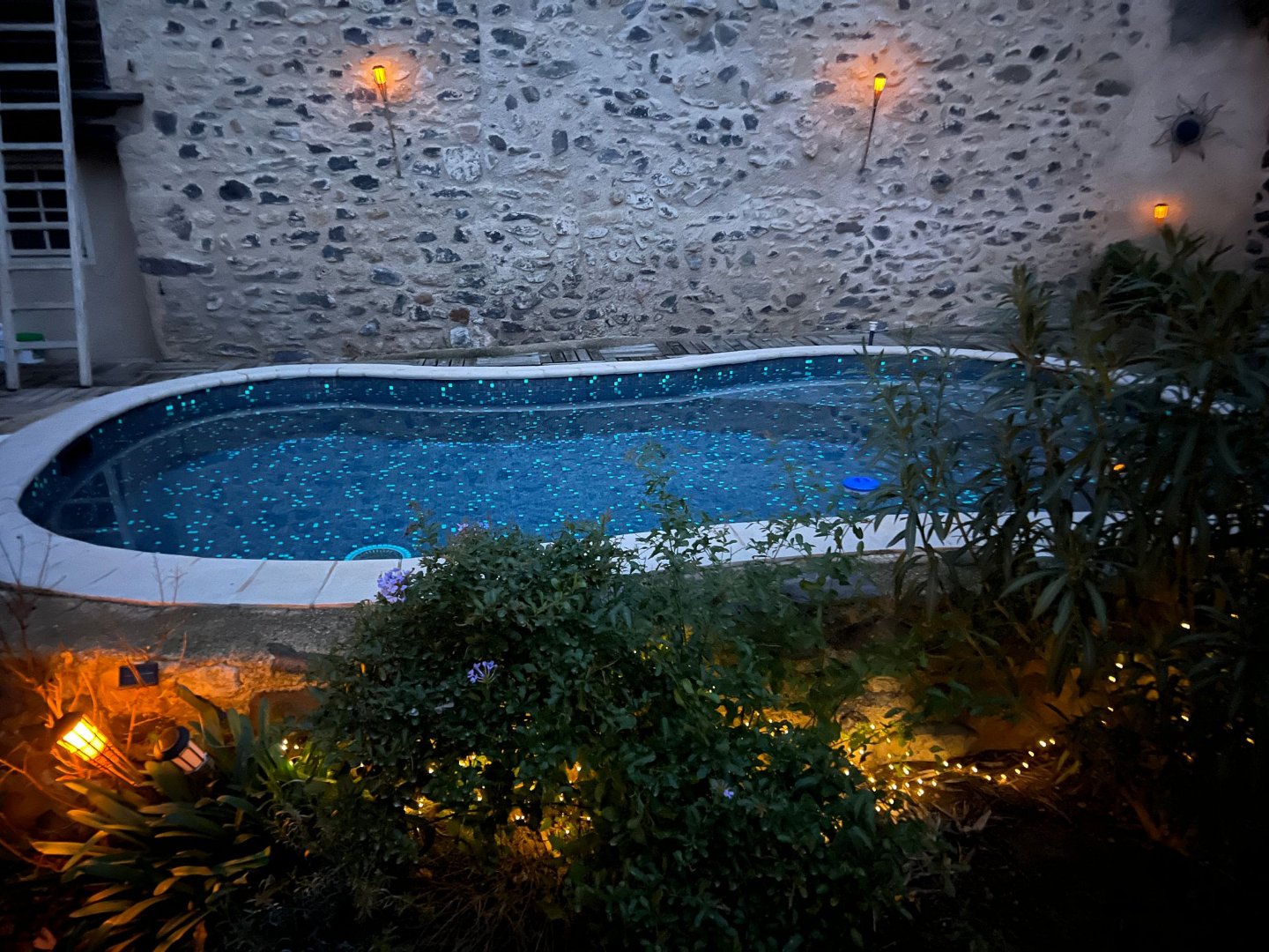 Piscine avec effets fluorescents , aux abords soignés pour des moments de calme absolu