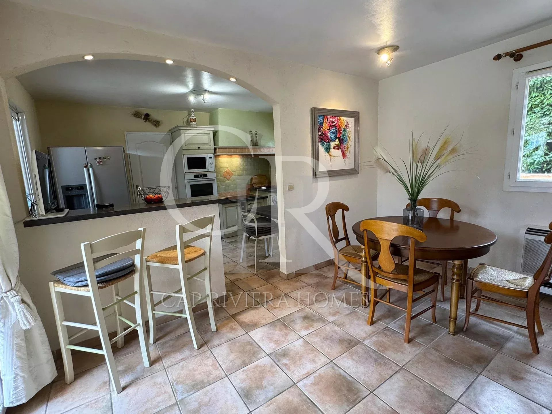 Charmante maison de 127m2 à Saint-Raphaël comprenant 3 chambres, deux salles de bains, deux toilettes indépendants, un salon, une cuisine équipée, un garage fermé avec mezzanine, une piscine, un terrain de pétanque