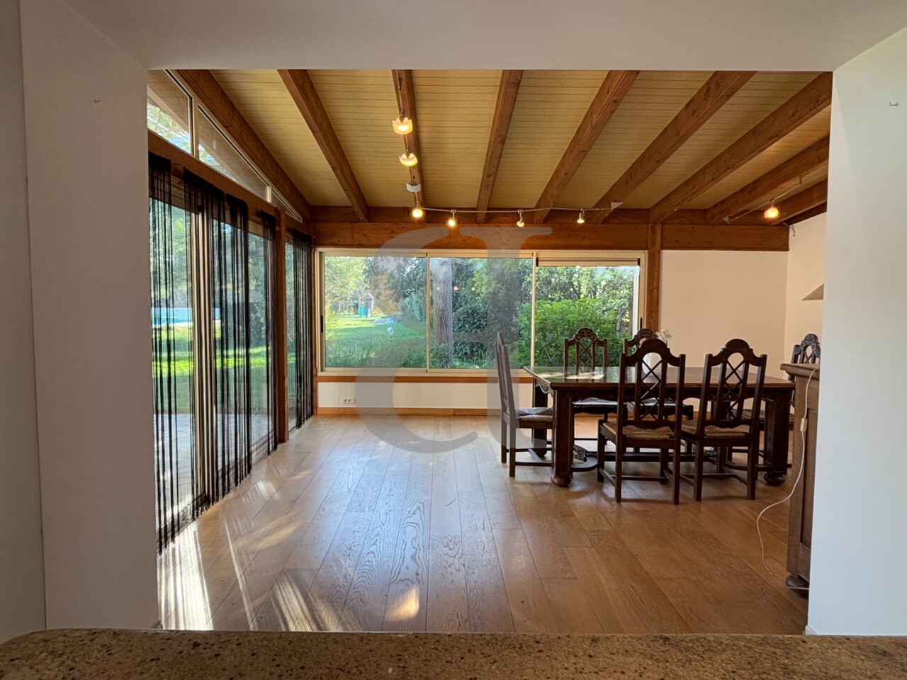 Le mas s’ouvre sur un magnifique jardin arboré de plus de 2700 m², véritable écrin de verdure. La piscine, bordée de plages ensoleillées, s’intègre harmonieusement dans cet espace paysager aux essences méditerranéennes. Des coins ombragés offrent des instants de fraîcheur en été, notamment la ravissante terrasse couverte, idéale pour les repas en extérieur ou les soirées entre amis.