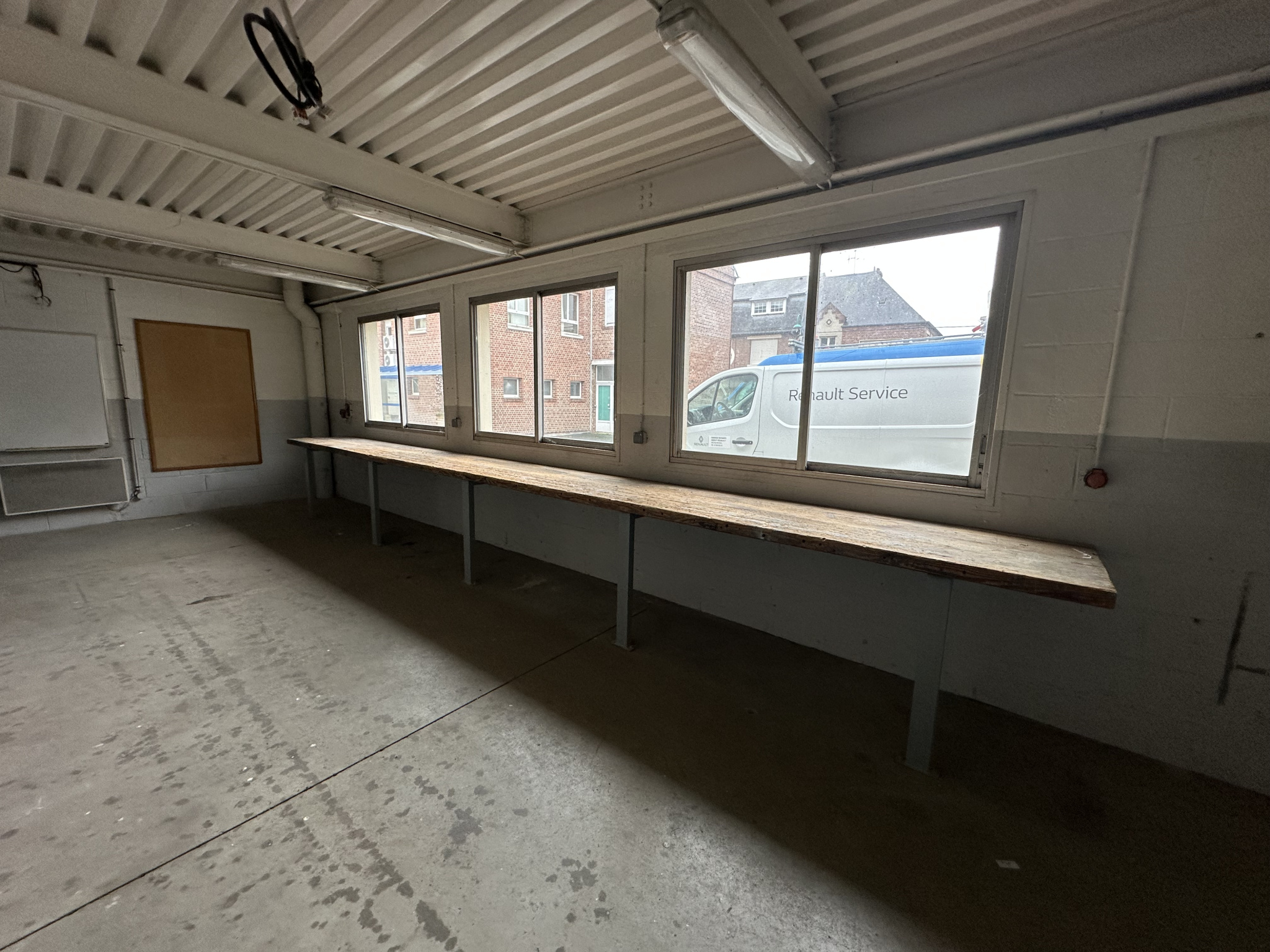 Un atelier équipé d'une porte sectionnelle (H : 4,50 m), accessible aux poids lourds Hauteur sous plafond : 4,80 m