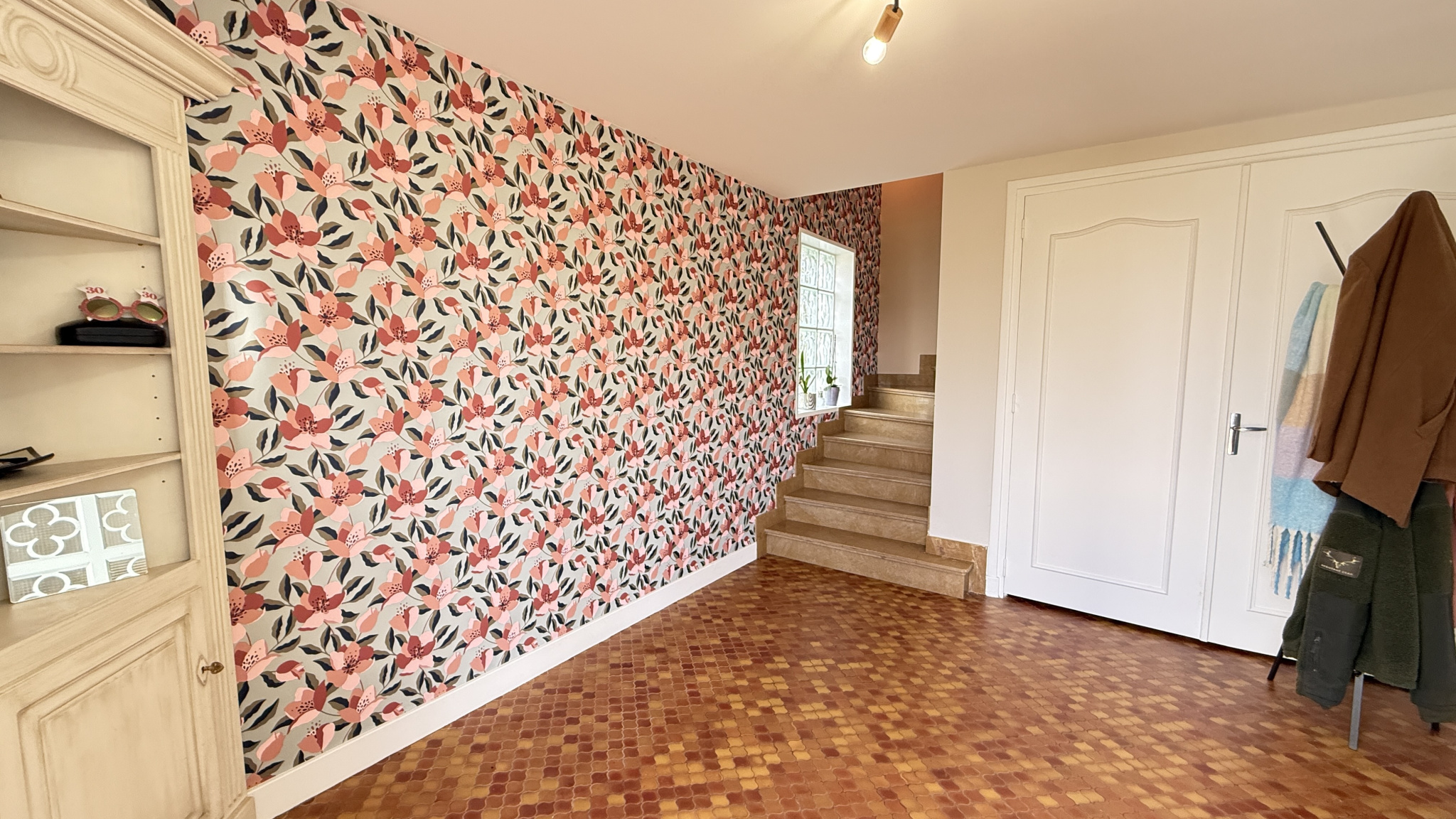 Elle offre une belle entrée avec un accès au garage, buanderie et cave.