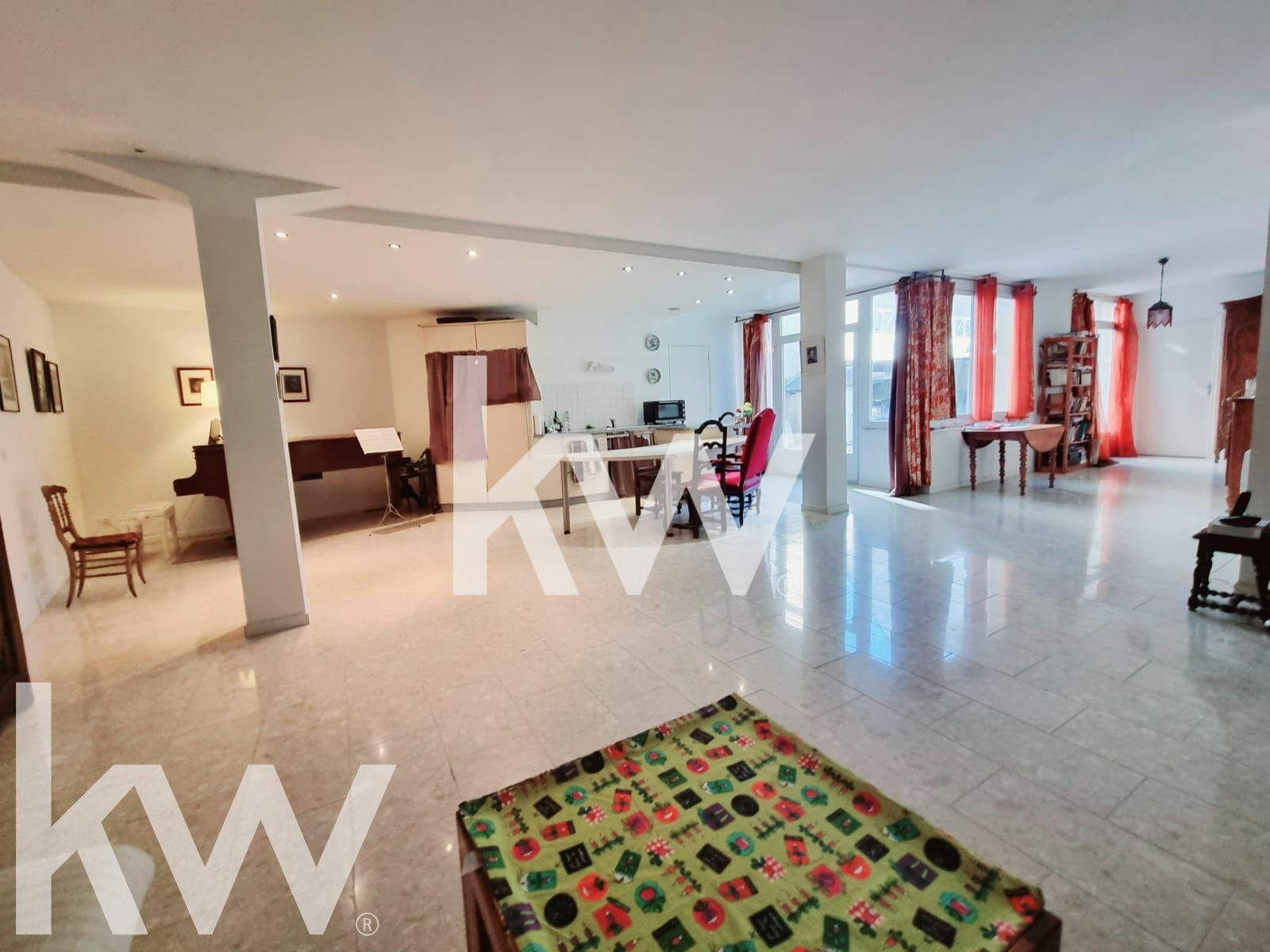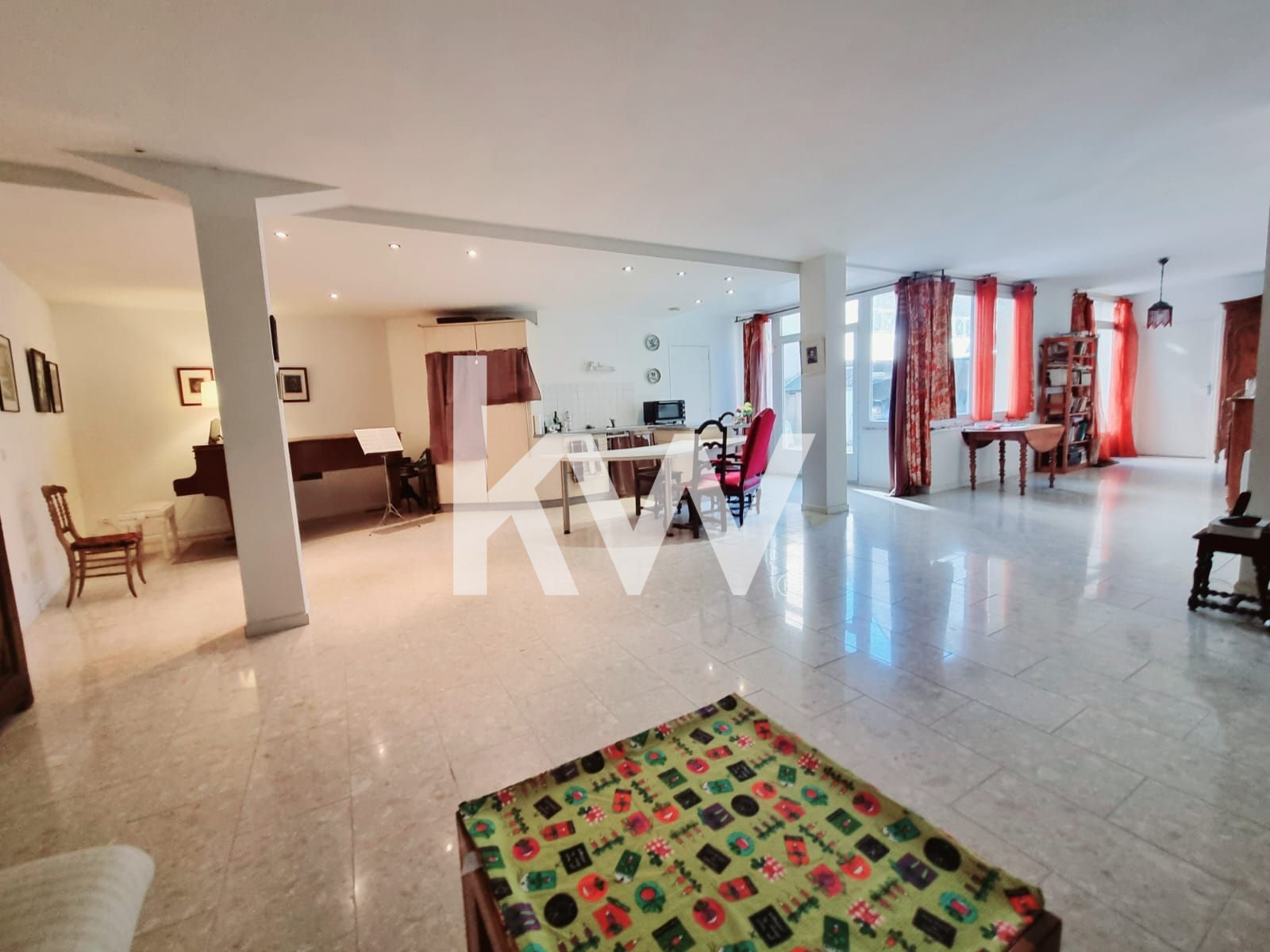 Ce loft est situé au rdc d'une petite copropriété , avec 2 chambres, un grand salon/séjour/cuisine américaine de 70 m², une salle de bains et un wc.