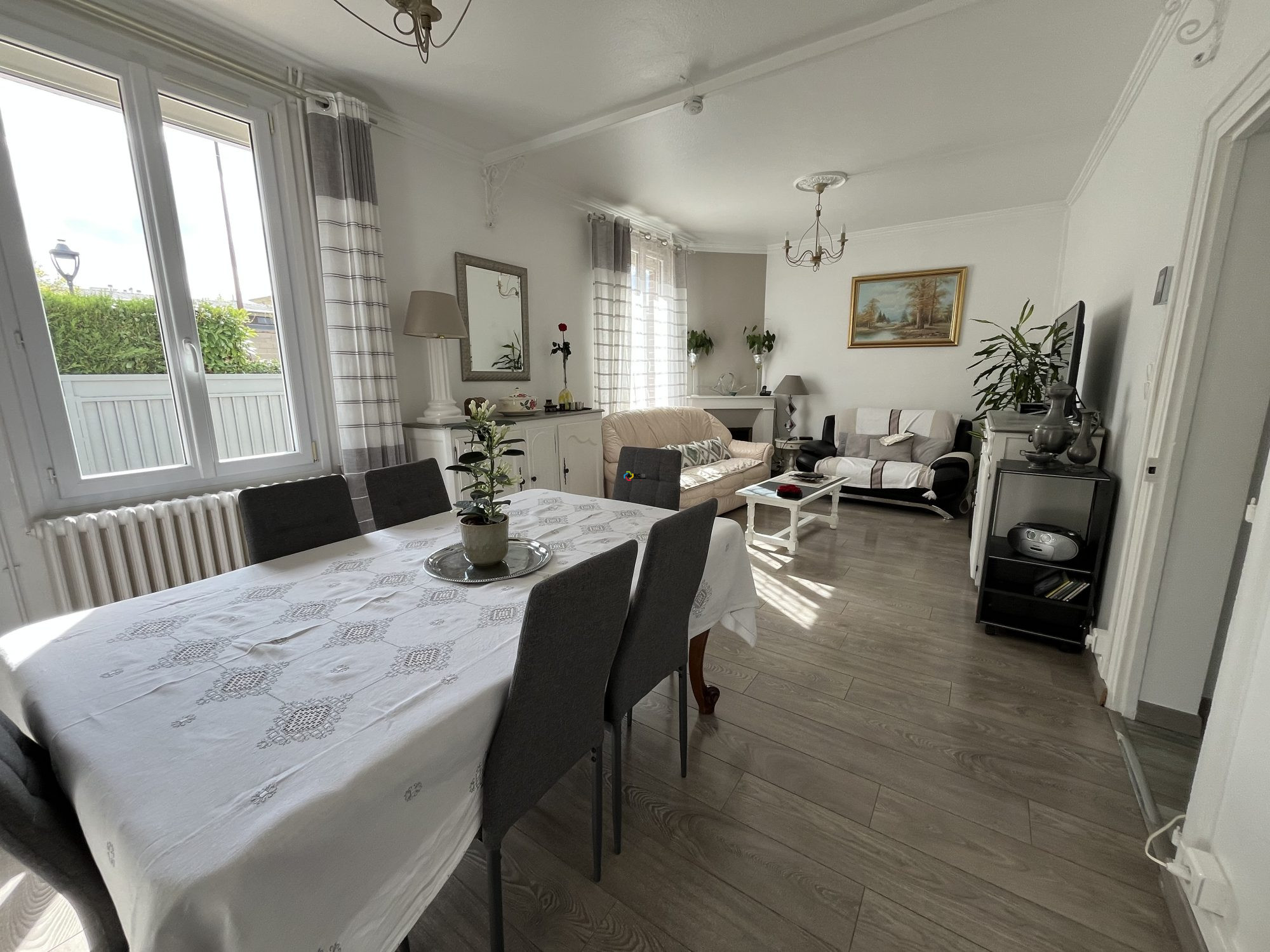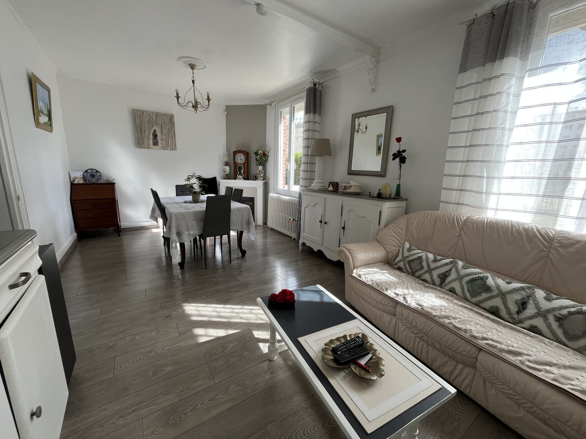 Vous découvrirez une jolie entrée desservant sur une cuisine aménagée et équipée suivie d'un agréable séjour avec une jolie luminosité et belle hauteur sous plafond.