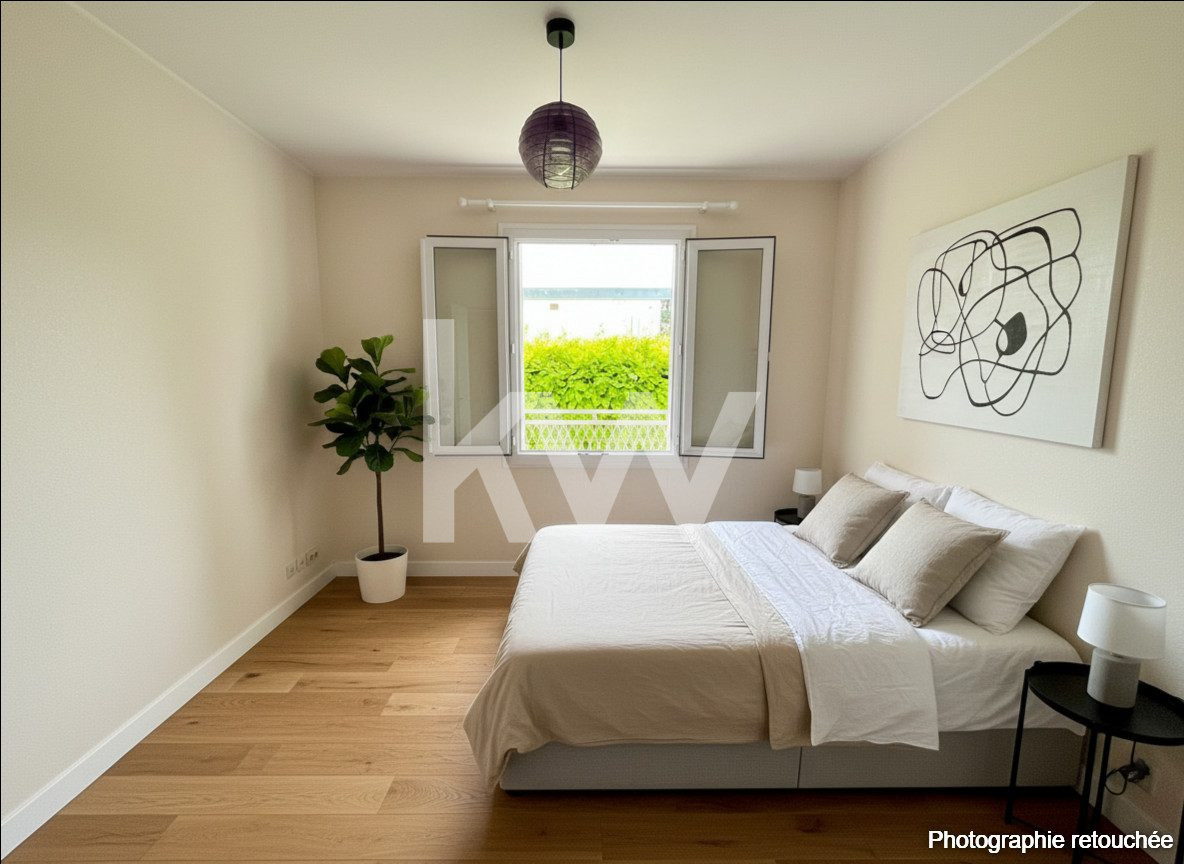 Appartement de 56 m² au premier étage. Il offre deux chambres et une cuisine aménagée équipée. En annexe, il bénéficie d'un balcon et d'un garage (1 emplacement). Quartier attractif, proche des commodités, des établissements scolaires, des crèches et des transports.