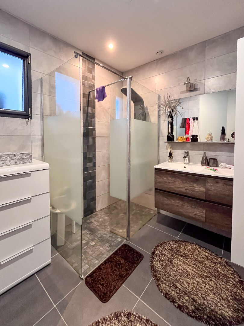 La partie nuit comprend une suite parentale avec dressing, salle de bains et douche, deux chambres, et une salle d'eau indépendante et WC indépendant