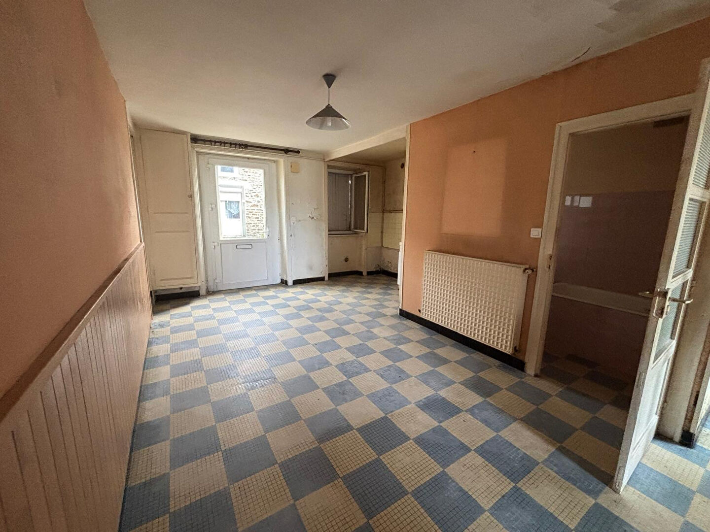 - un appartement de type 3 mansardé comprenant: entrée, séjour avec coin cuisine, deux chambres, salle de bains, wc, grenier.