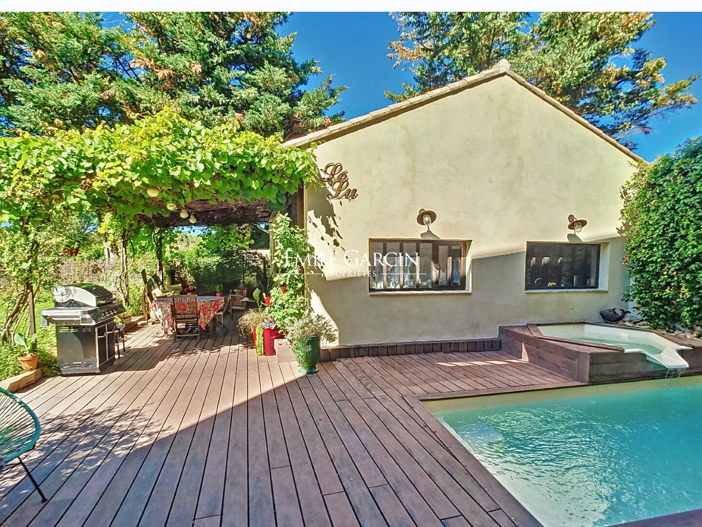Cette propriété comprend une habitation principale avec 5 chambres, un studio et un loft. Plusieurs caves et un atelier. Le tout sur près de 900 m² de terrain clôturé et joliment arboré, avec plusieurs terrasses, un bassin (10 m²) et spa chauffé.
