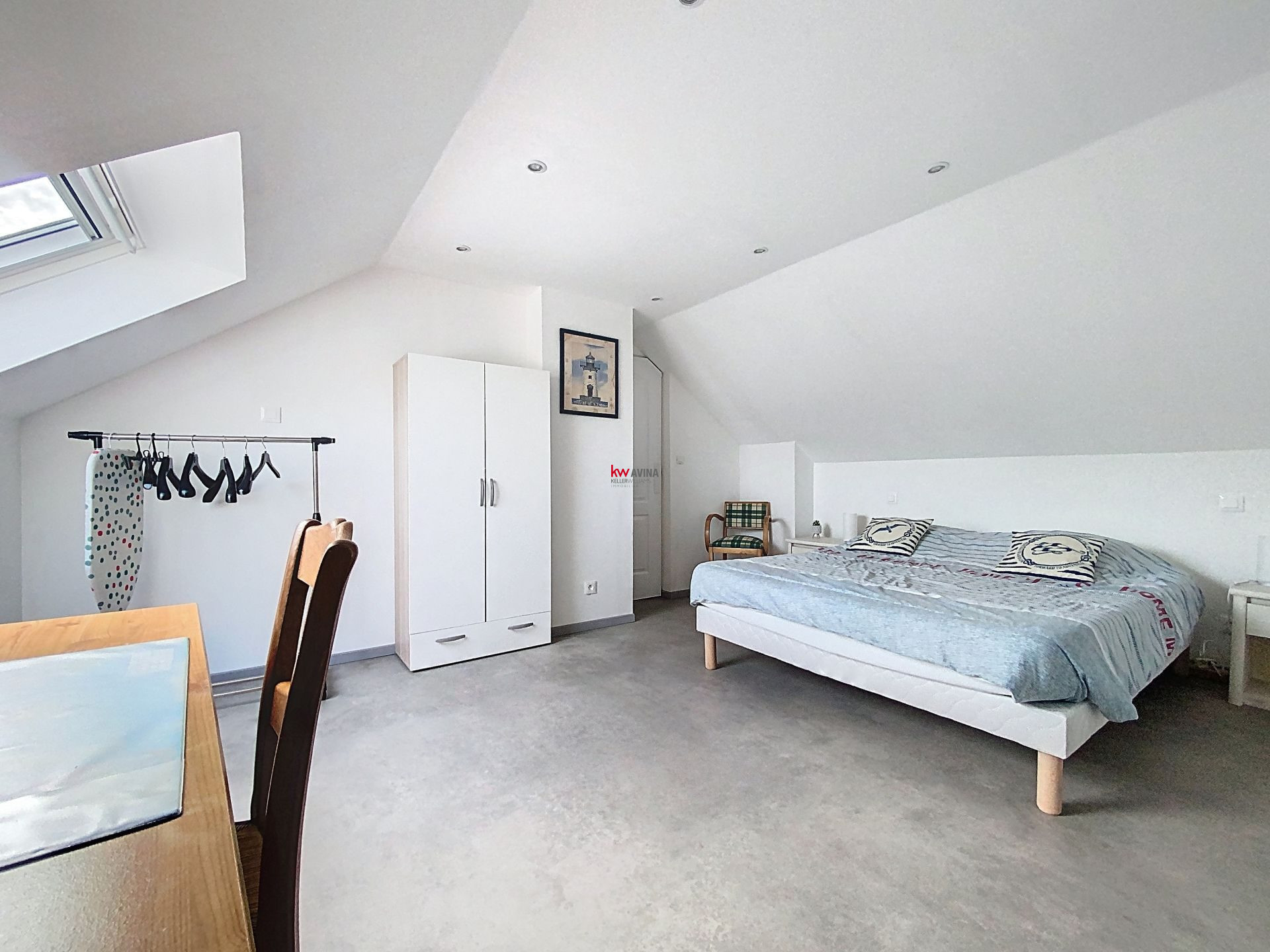 À l'étage, un appartement complet (séjour/cuisine, chambre, salle d'eau) avec double accès (intérieur et extérieur). Idéal pour un revenu locatif, une suite parentale ou un espace indépendant.