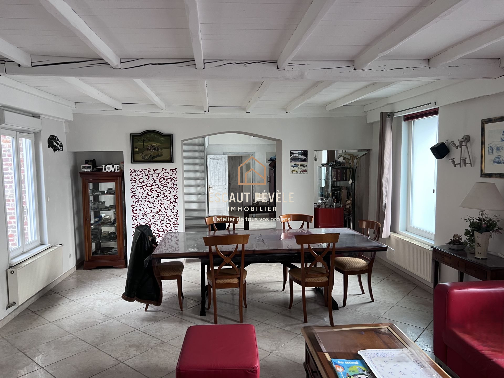 HASNON (59178) : Cette longère atypique de 8 pièces sur 260 m² et de 2 300 m² de terrain associe subtilement authenticité, charme de l'ancien, confort moderne et offre de beaux volumes.