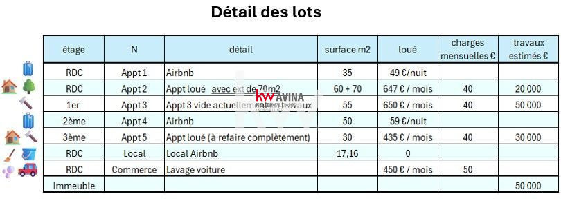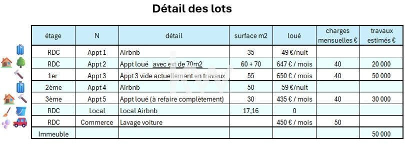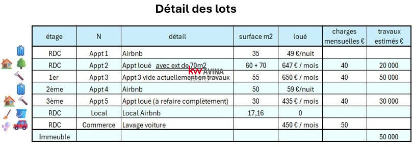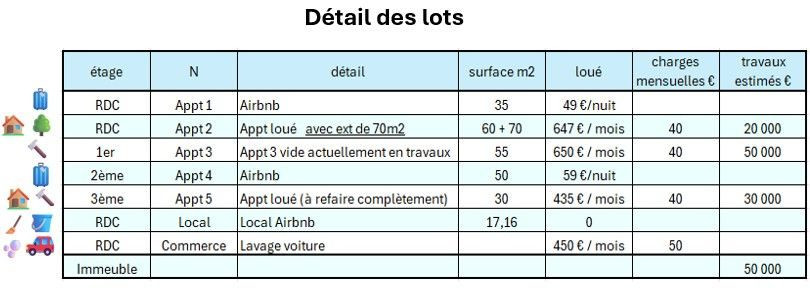 Détail complet des lots et loyers disponible dans le tableau en photo.
