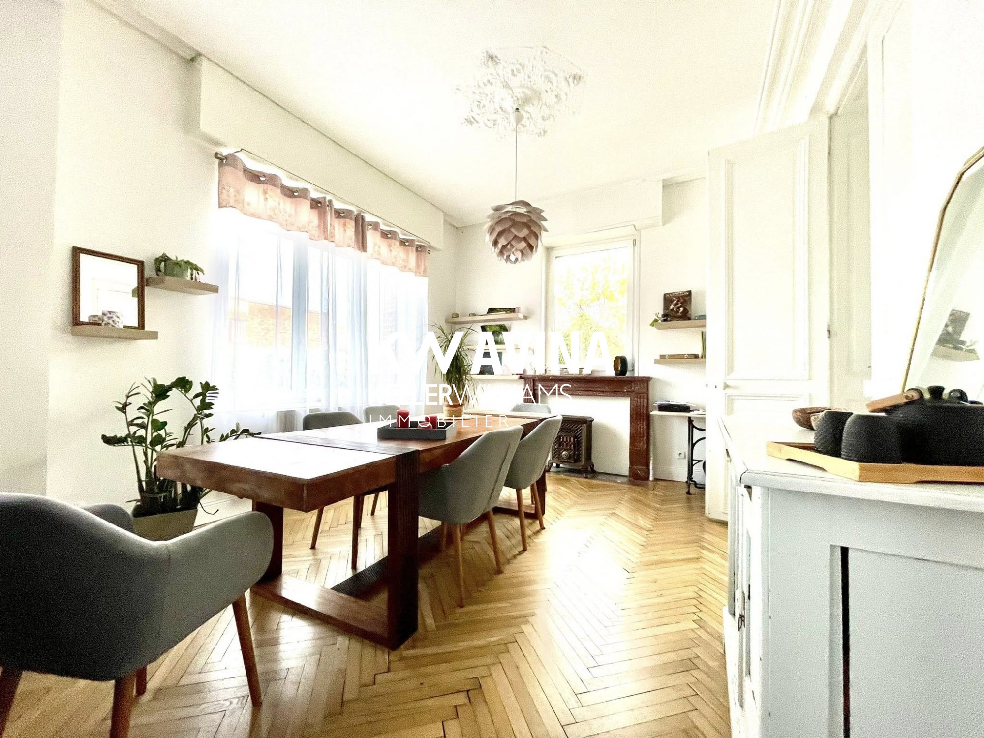 - Un hall d'entrée, un salon salle à manger avec une belle hauteur sous plafond, son parquet chevrons et ses jolies cheminées à bois fonctionnelles, une grande cuisine équipée avec son coin dinatoire, un cellier buanderie, une salle de bain avec douche à l'italienne et une double cave.