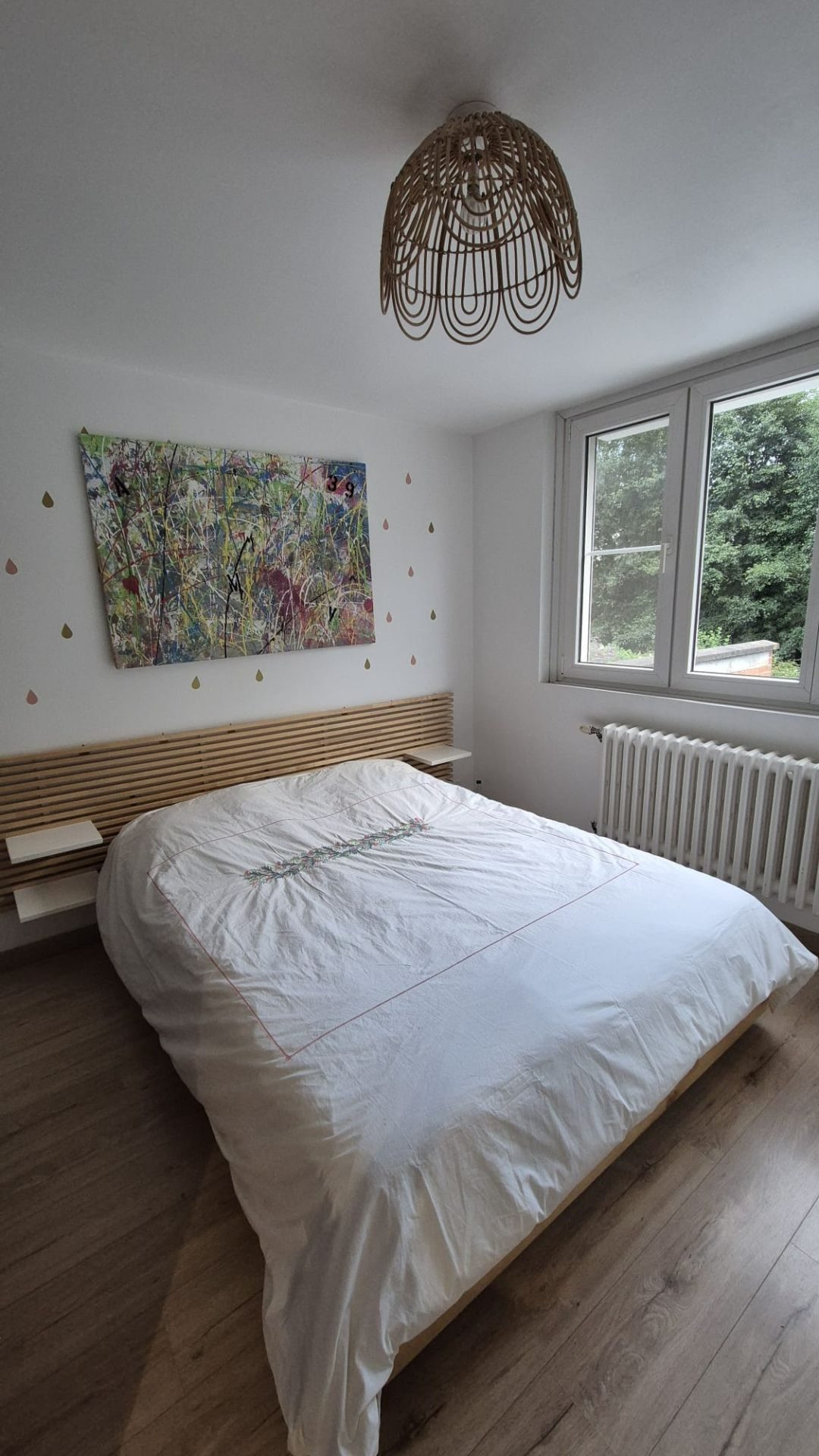 Au premier étage ; 2 chambres, une salle de bain (et douche) et un dressing très fonctionnel.