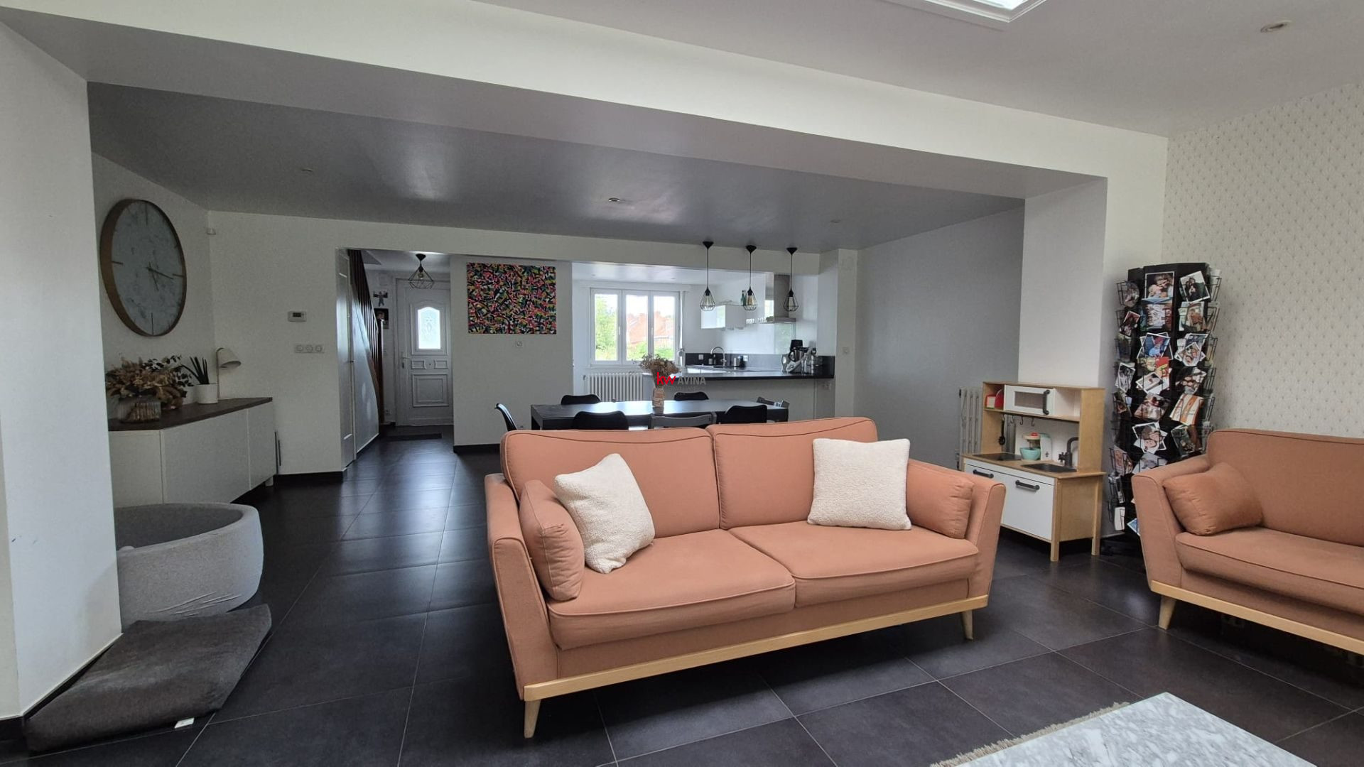 Elle propose des pièces de vie de belle taille, une cuisine ouverte sur la salle a manger.
