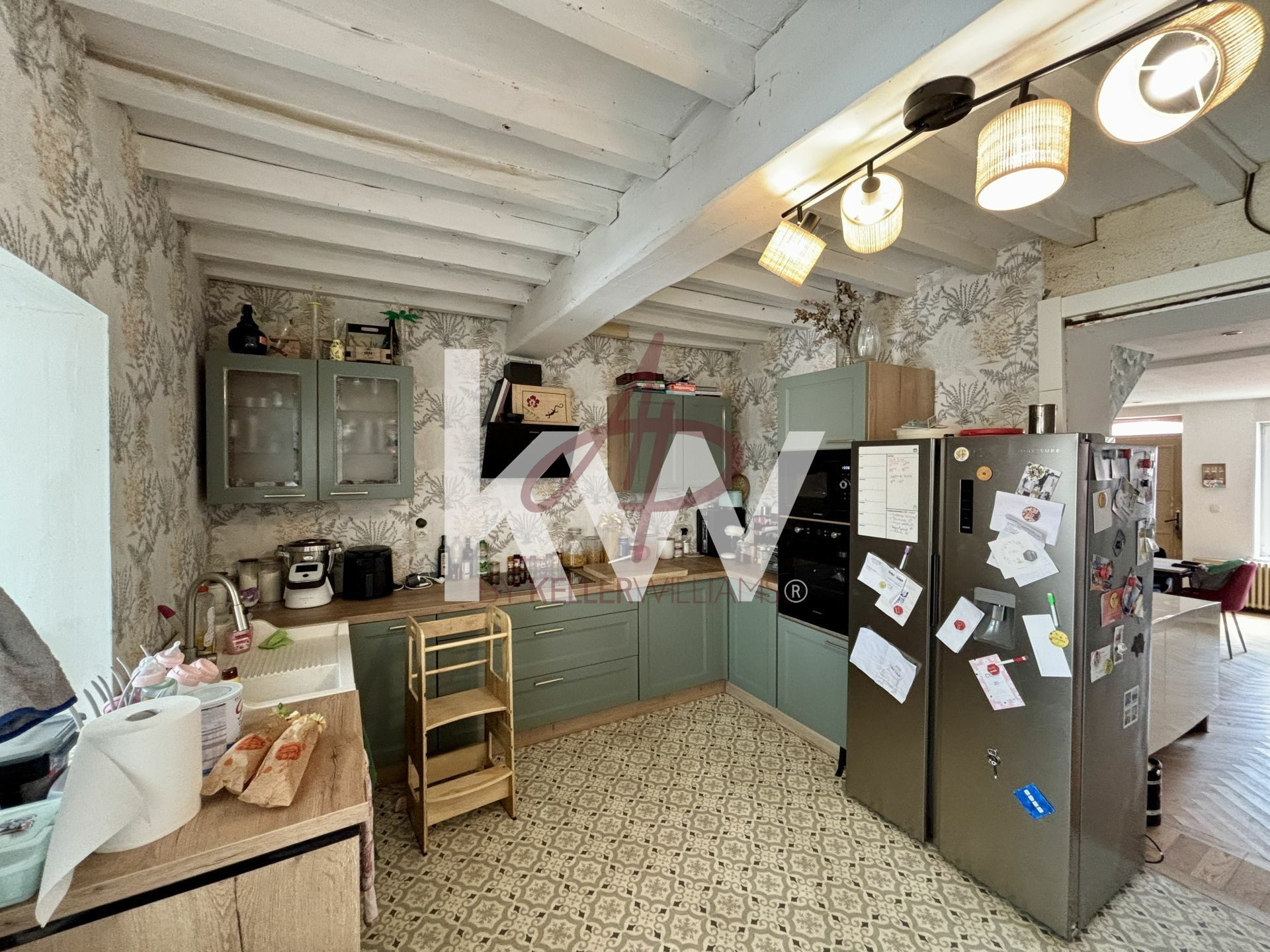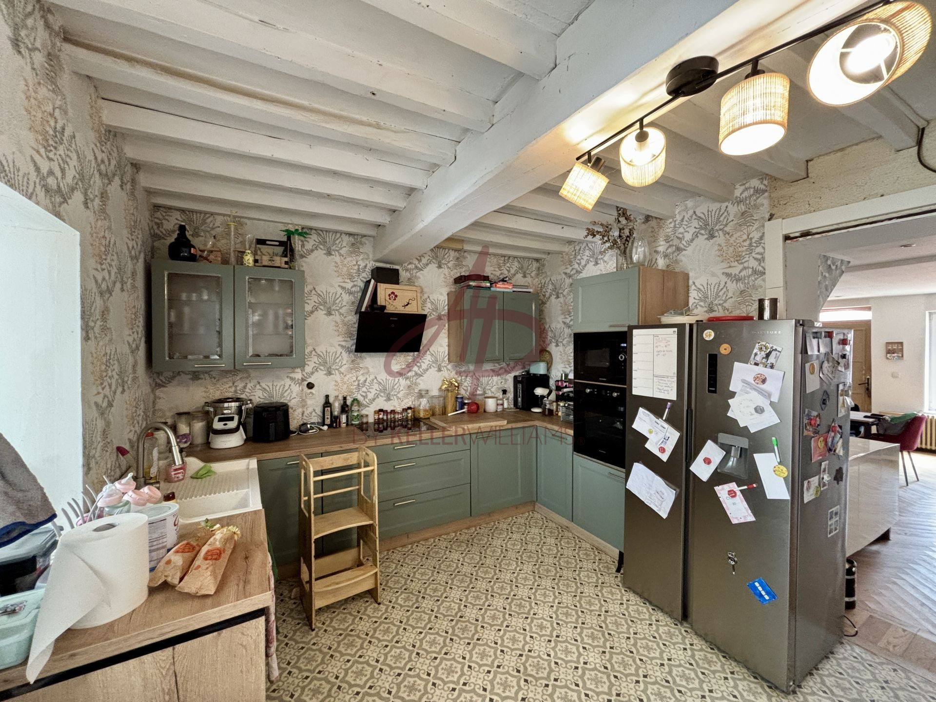 Dès l'entrée, le charme opère avec une cheminée décorative et un parquet en chevrons. Vous découvrirez une première pièce de vie de 23,2 m², menant à une cuisine équipée de 14 m².