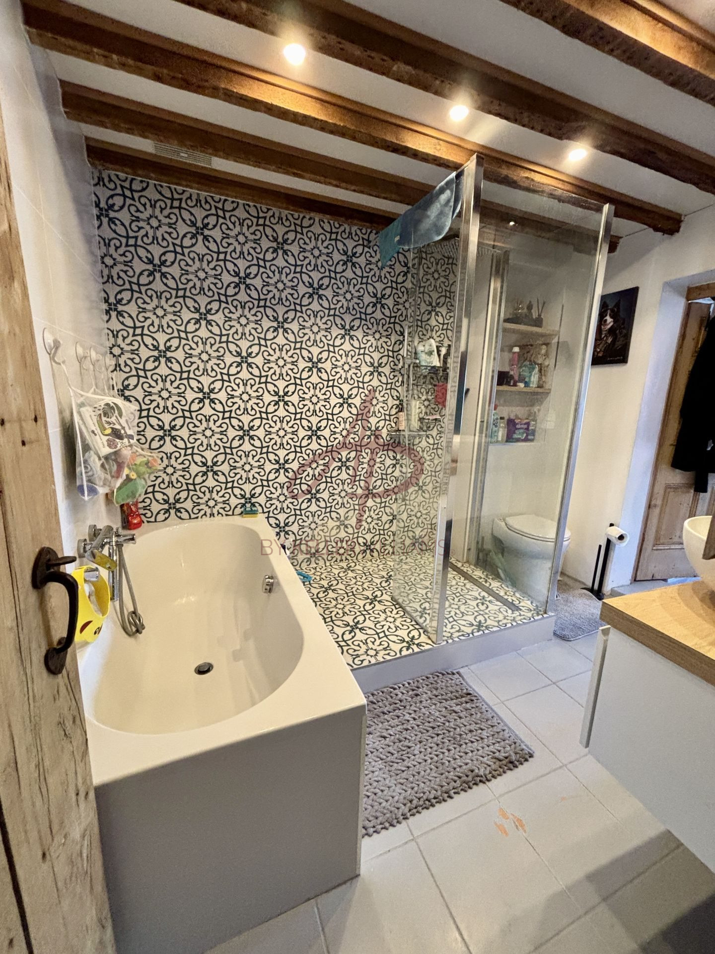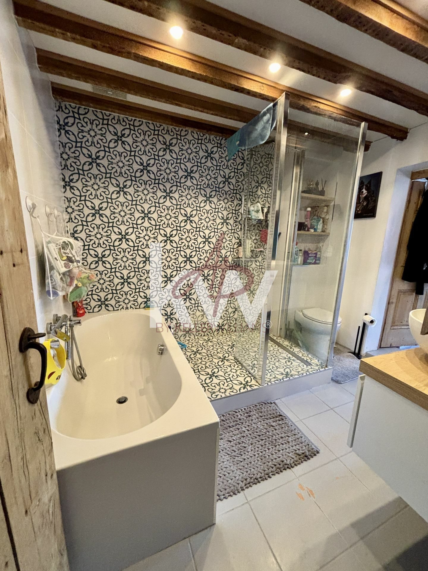 À l'étage, deux belles chambres de 12,8 m² et 15,3 m² ainsi qu'une salle de bains spacieuse avec baignoire, douche et vasque.