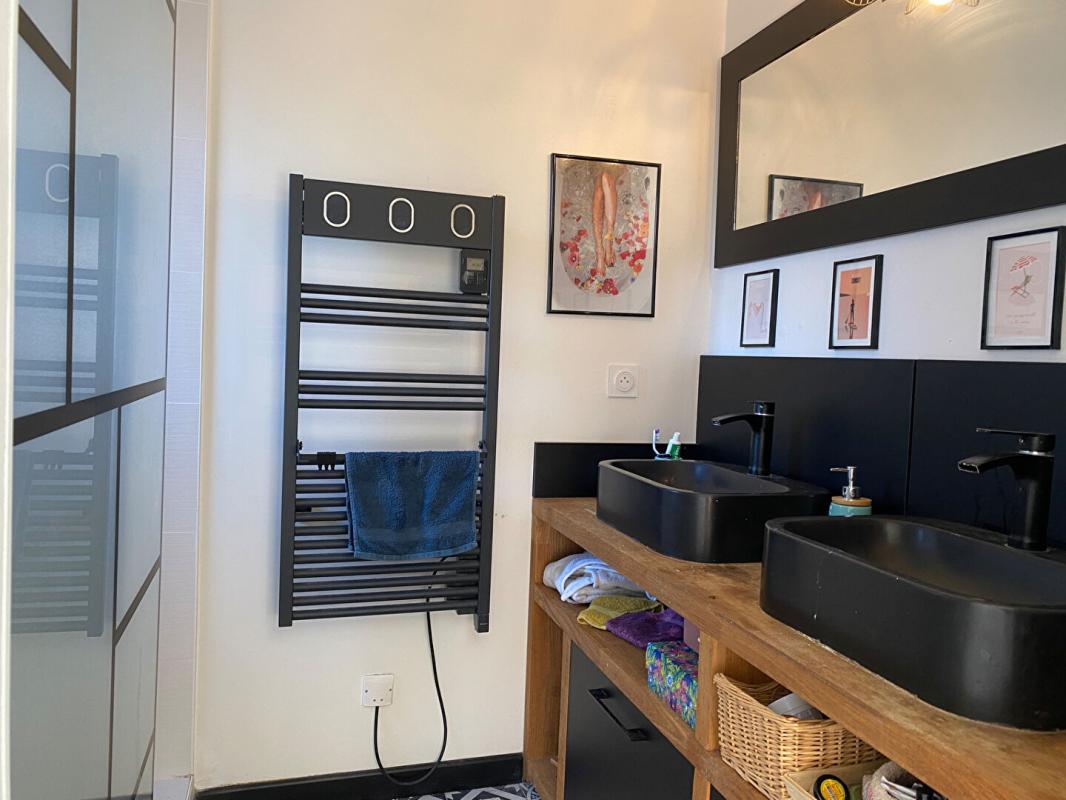 Je vous propose cette agréable maison de 110M2 aux prestations soignées située à pied du bourg de Baden sur le bord du Golfe du Morbihan.Construite sur une parcelle de 356M2 vous serez séduits par ses beaux volumes de vie lumineux, traversants au calme sans vis à vis.Vous bénéficierez de la proximité des commerces, écoles, bus à pied ainsi que la facilité d'accès à l'axe Auray/Vannes.Au rez de chaussée vous disposez d'une entrée indépendante, une cuisine aménagée /équipée ouverte sur une salle à manger aux volumes confortables, un salon indépendant , une vie de plain-pied avec sa suite parentale chambre placards aménagés salle d'eau privative.Egalement sur ce niveau une arrière cuisine entièrement équipée avec accès au jardin.