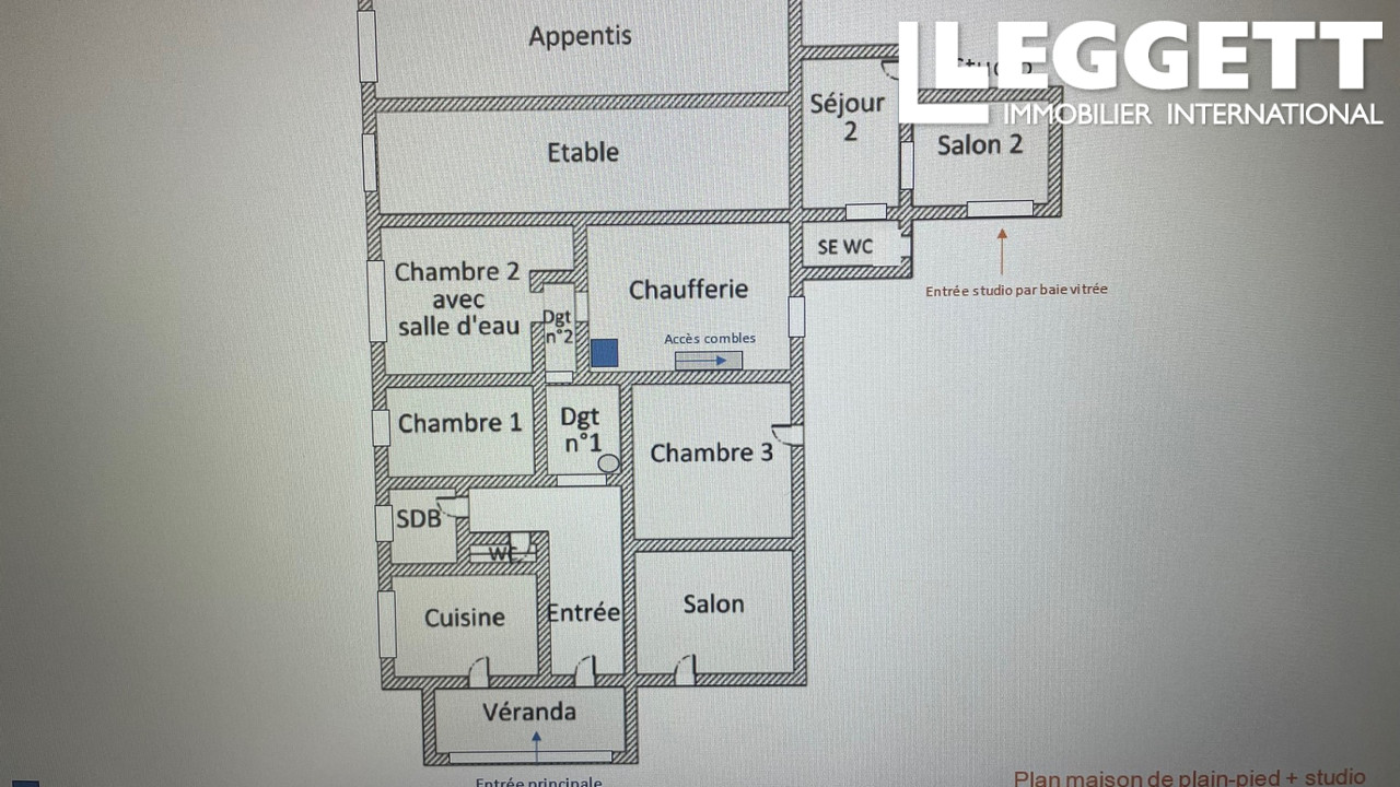 Maison ancienne rénovée de plain-pied avec studio attenant et dépendances.