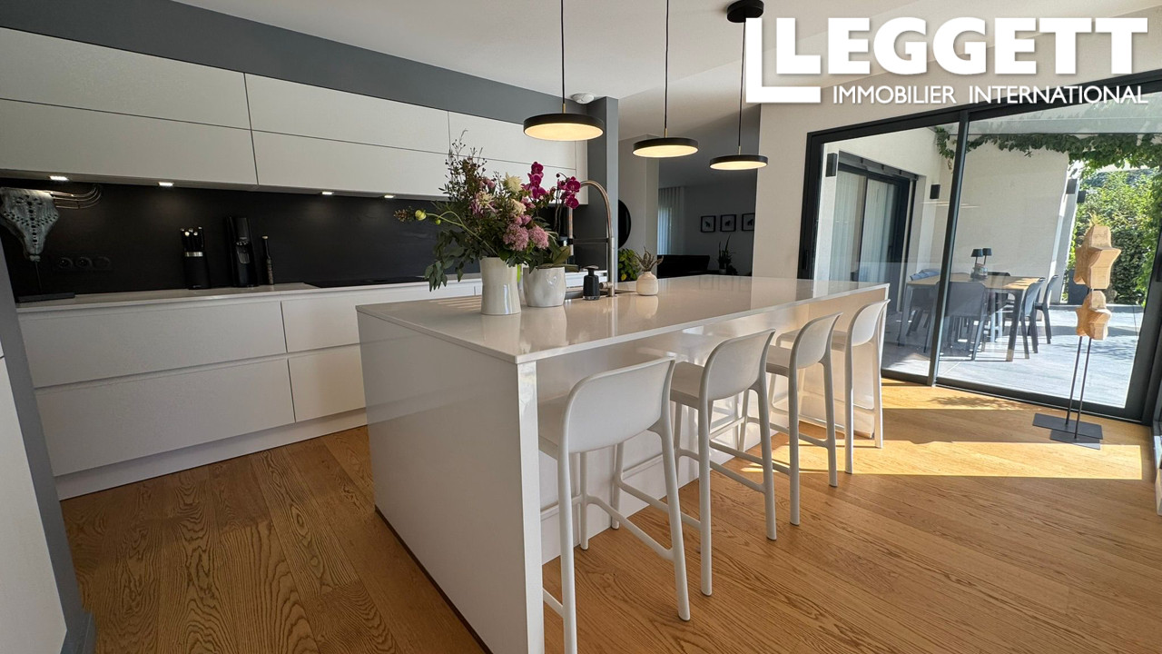 À l'extérieur, 1500 m² dont un jardin paysagé sans vis-à-vis, une terrasse couverte de 35 m² et un sublime couloir de nage avec volet rigide composent un cadre de vie unique. Garage de 30 m² et carport. Calme absolu, tout en permettant de rejoindre les commerces à pied : une opportunité aussi rare qu'exclusive.