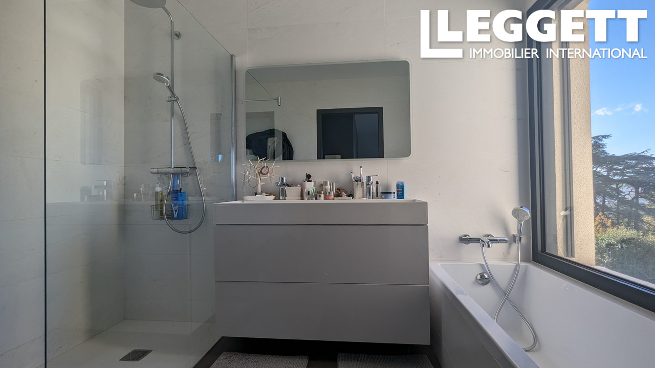 A41294DVI69 - Bien être garanti avec ce bien rarissime sur le marché, cette maison d'architecte presque neuve offre une vue à couper le souffle sur les monts du Lyonnais et le Pilat.