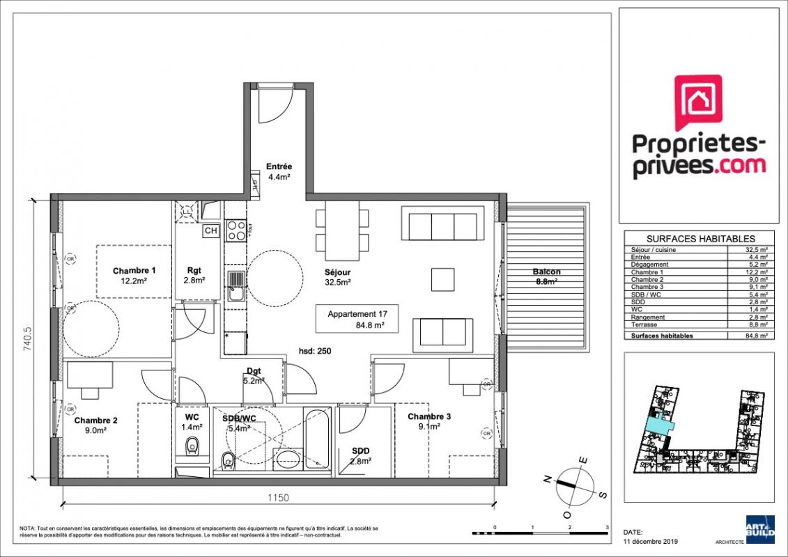 Magnifique quatre pièces de presque 85 m² au 1er étage avec ascenseur, salon séjour cuisine aménagée de 32 m², trois chambres, et une terrasse de 8,80 m². Gros plus sur cette offre, 1 parkings.