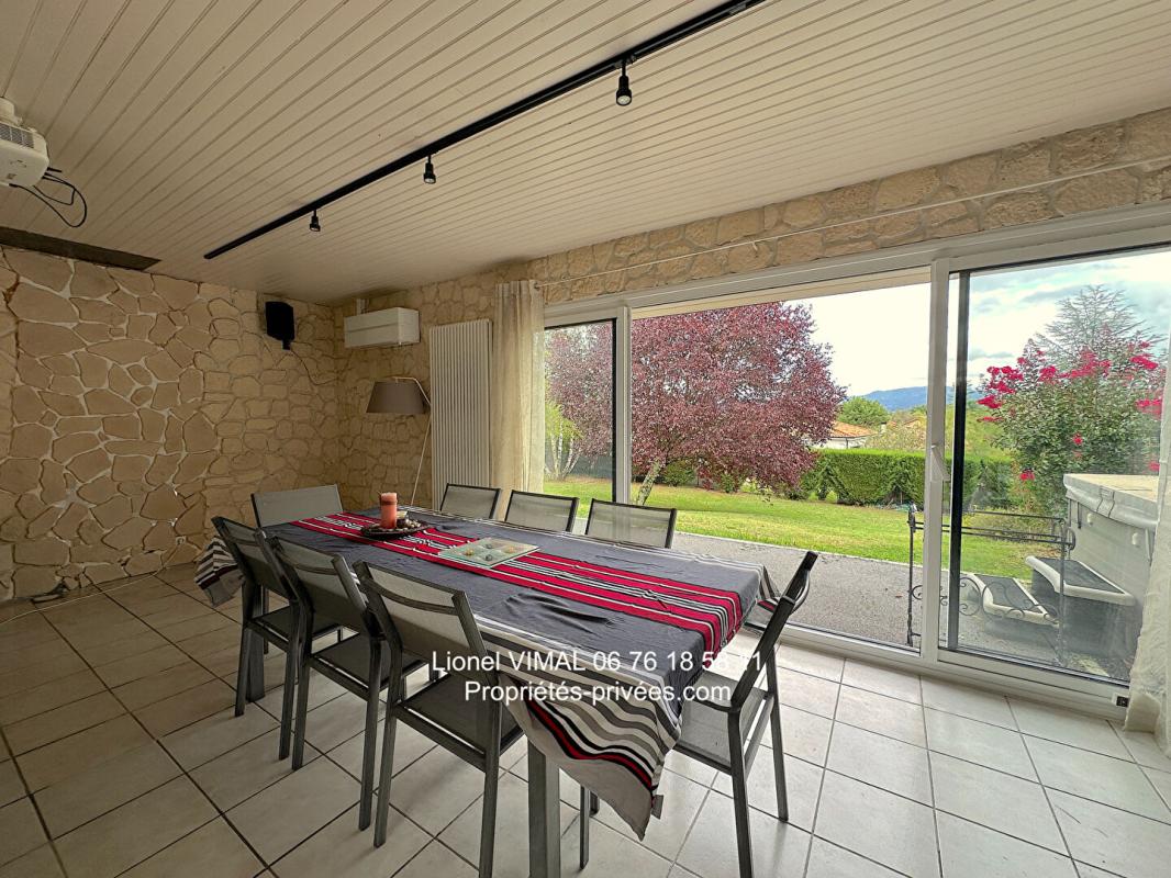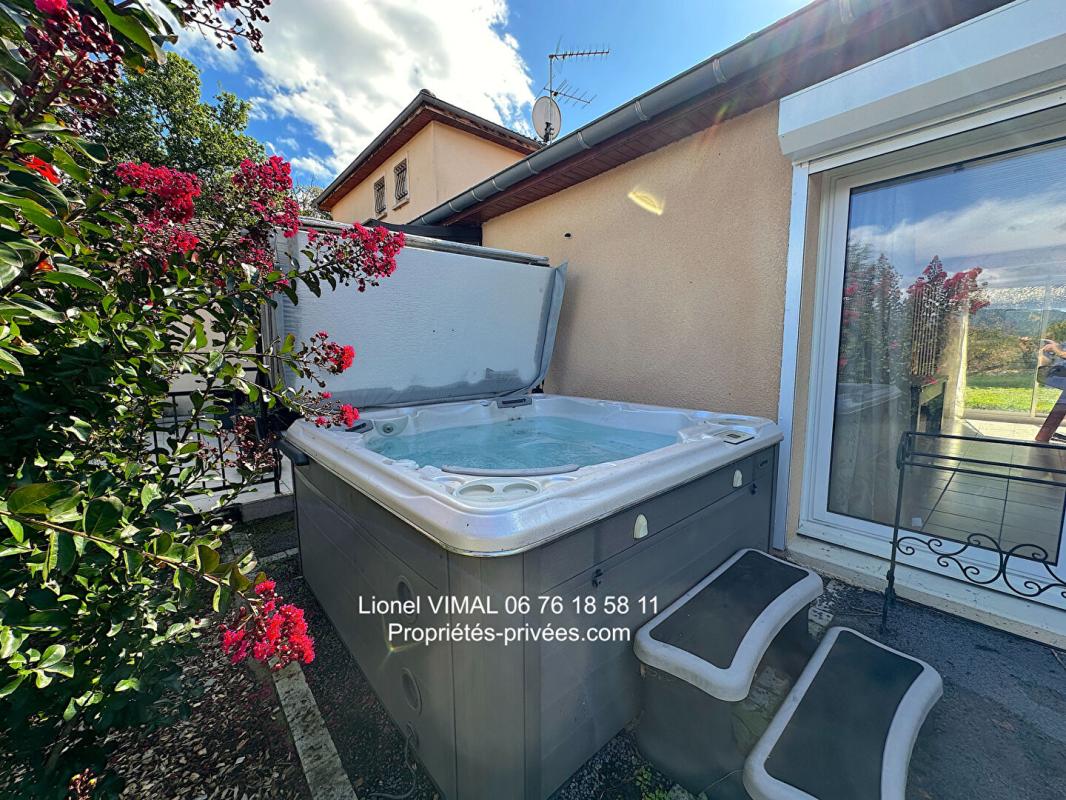 Le jardin soigné entièrement clos et aménagé avec chemins d'accès et ses 3 terrasses offre diverses plantations et arbres fruitiers, une piscine hors sol chauffée ( 7,3 x 4 m ) sur terrasse de 120 m2 avec chalet bois et four à pizzas, un jacuzzi, un terrain de pétanque, un poulailler, une petite marre, une fontaine ..