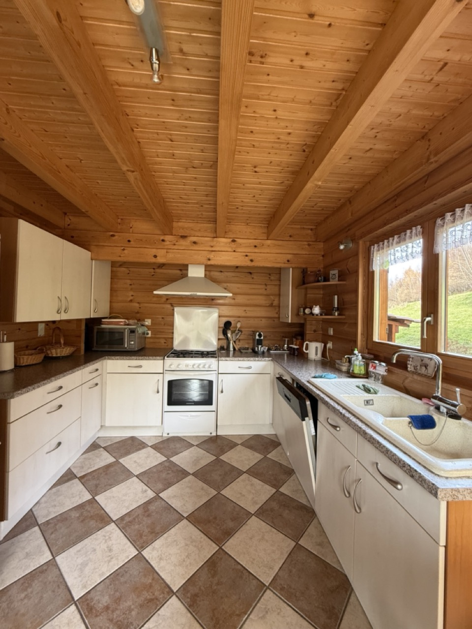 Ce chalet est situé dans un cadre exceptionnel, sur les hauteurs de Ban de Laveline, offrant une vue panoramique sur les montagnes environnantes.