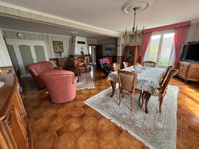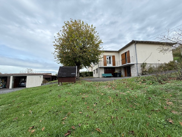 Sur terrain totalement clos de 2700 m2 principalement en verger; avec un double garage et préau.