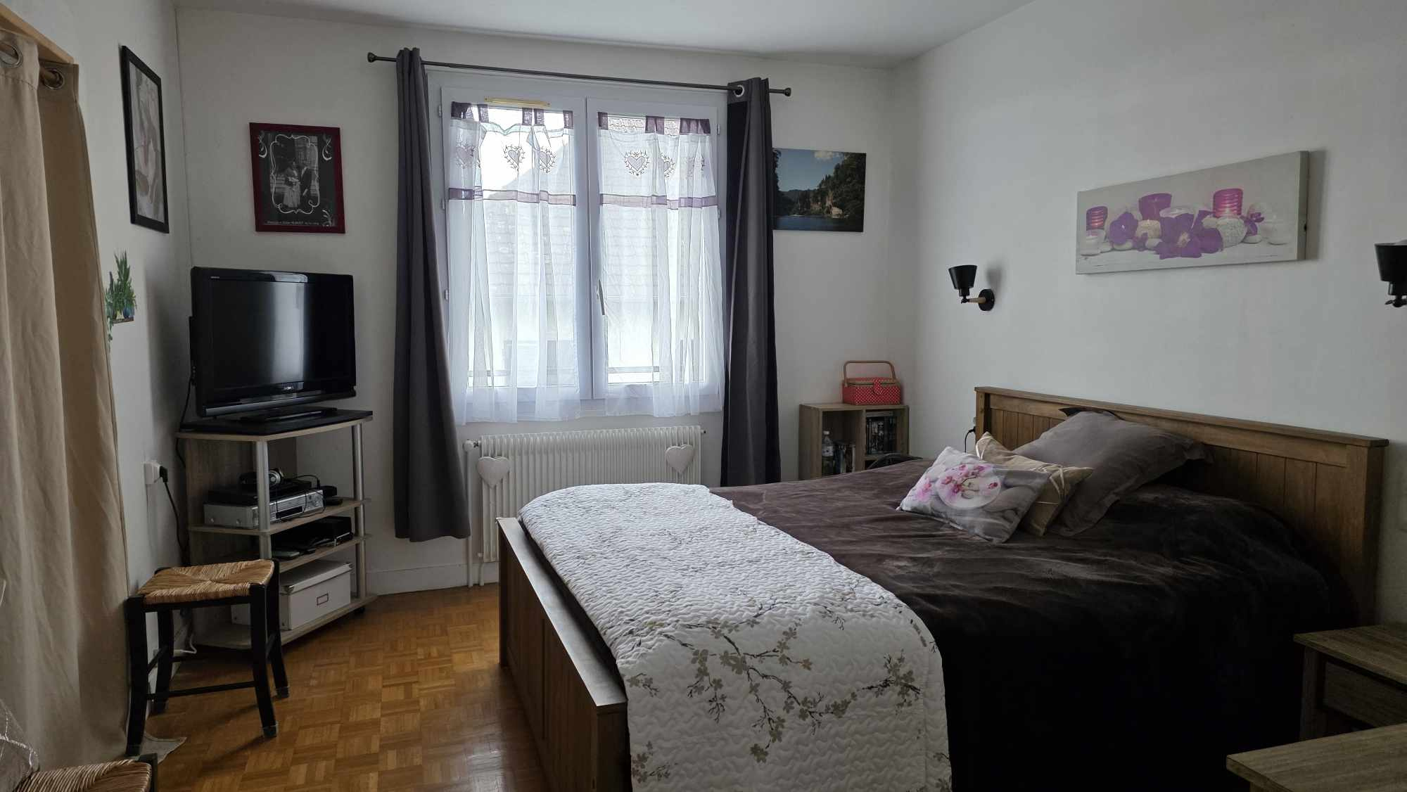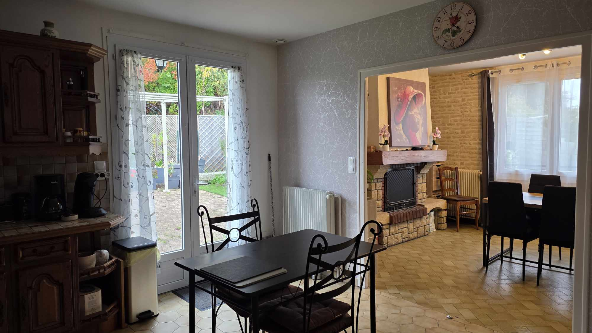 Un hall d'entrée avec placard, une cuisine aménagée ouverte sur un salon séjour avec cheminée insert, 3 chambres salle de bains et WC.