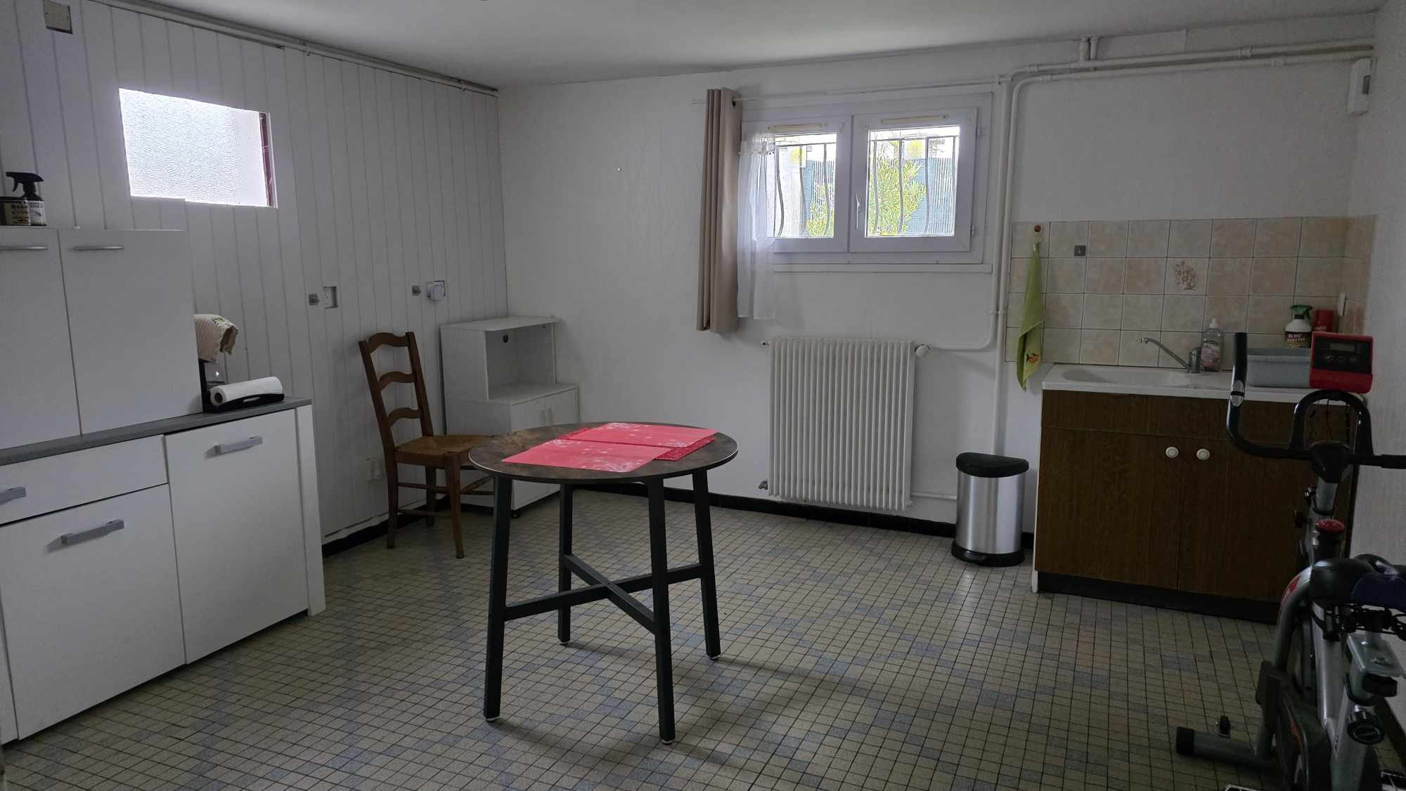Au sous-sol: une partie du sous-sol a été aménagé en habitation avec cuisine, deux chambres, douche et WC.