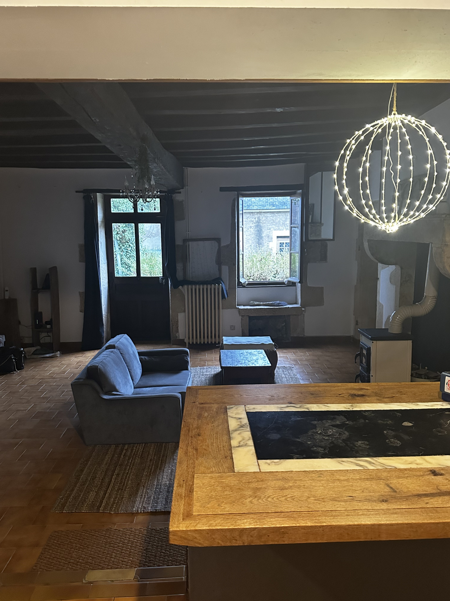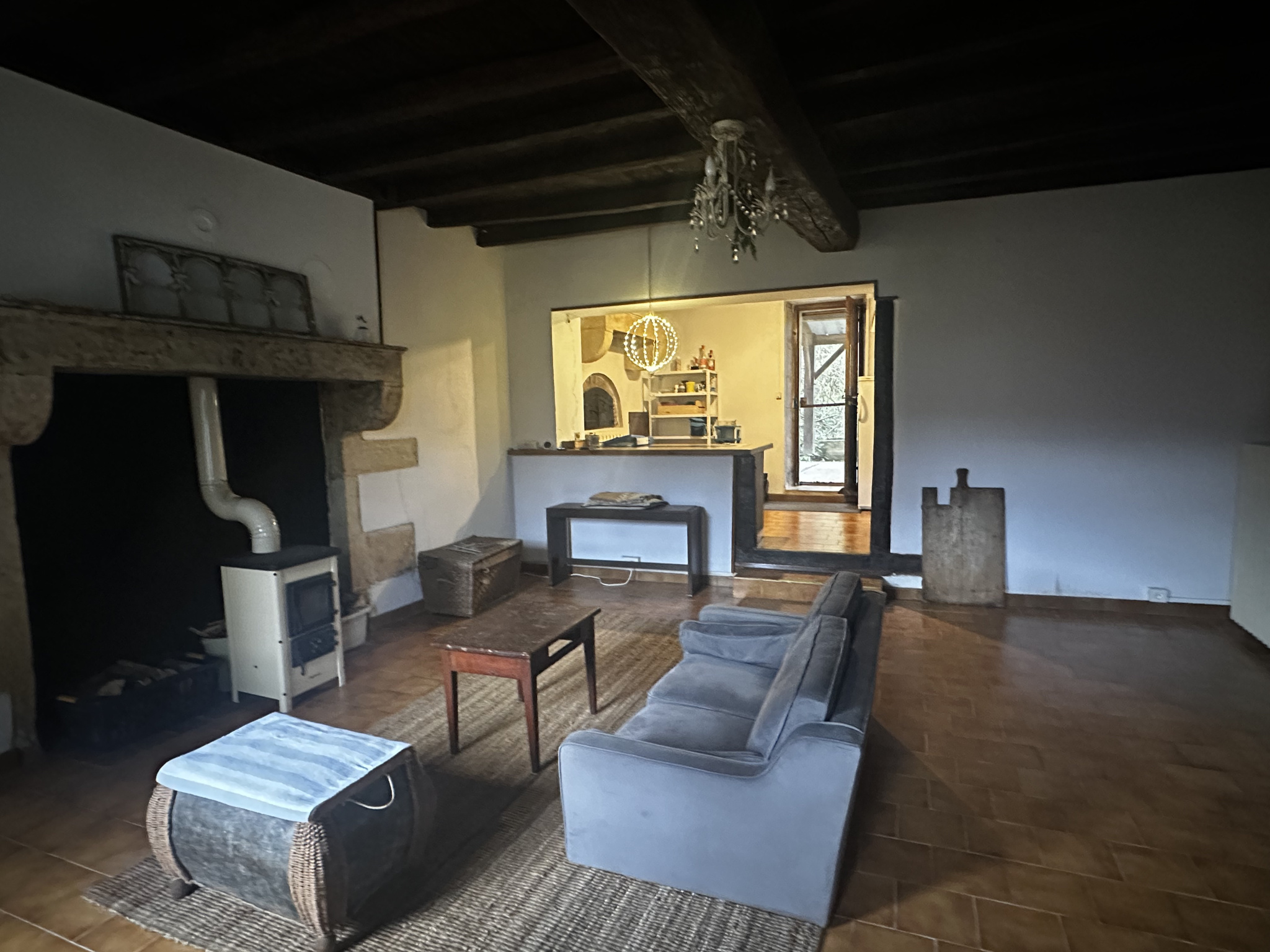 La maison est équipée d'un chauffage central au gaz et d'un poêle à bois.