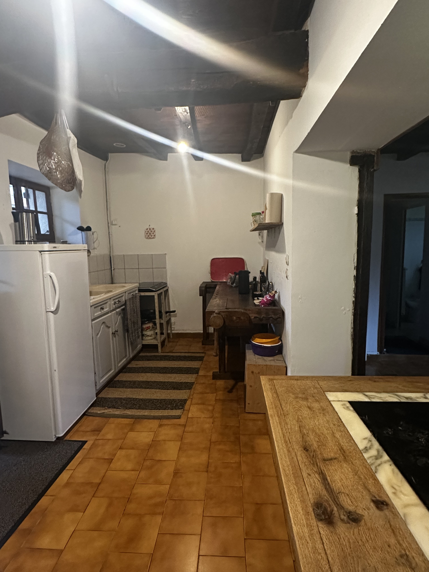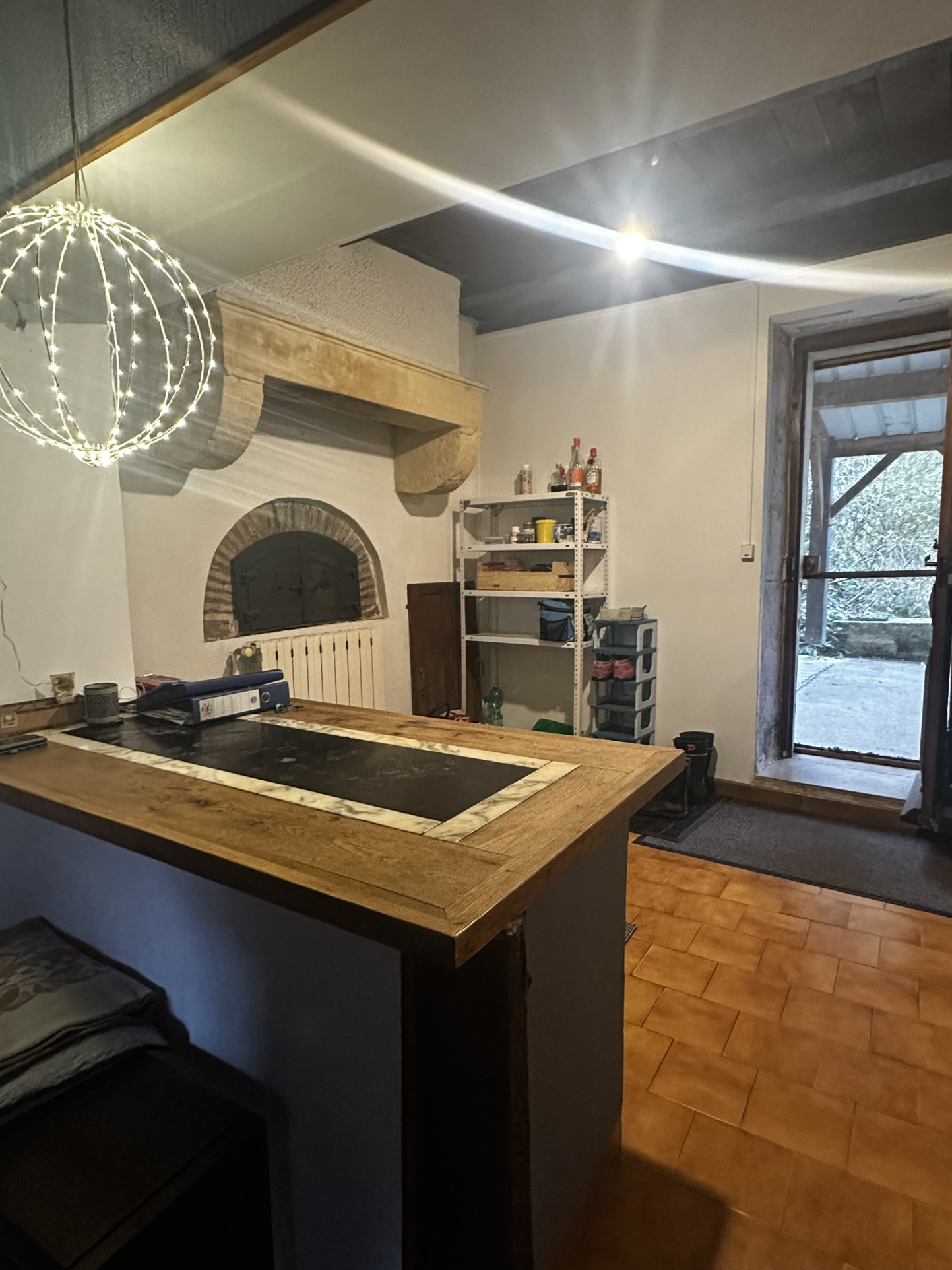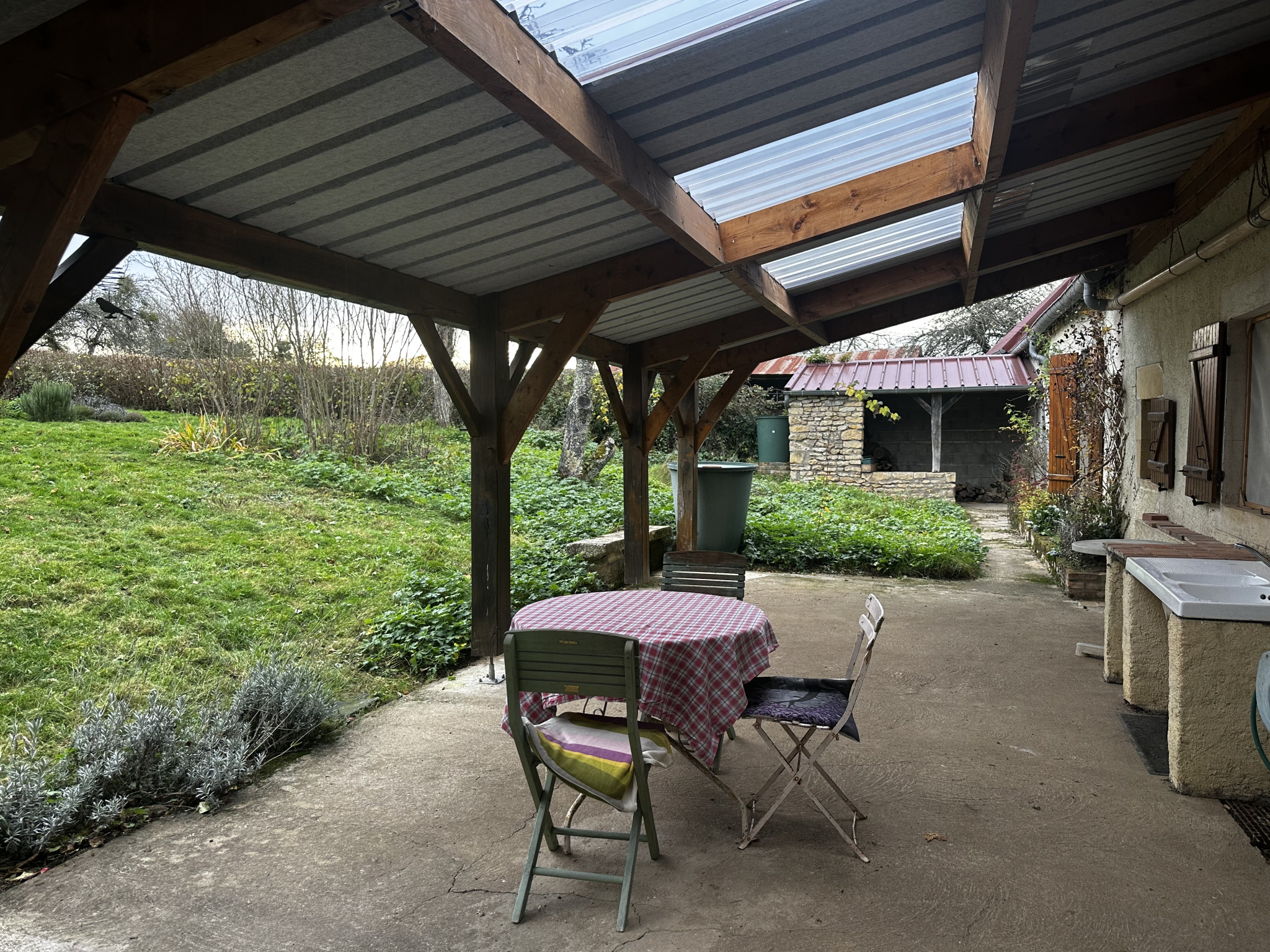 Atelier et garage attenants, bûcher et cave.