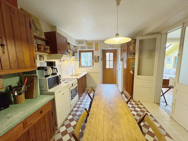 L'AGENCE DE VILLENNES vous propose à ORGEVAL, cette maison ancienne de caractère offrant un fort potentiel pour une belle rénovation. Elle se compose d'une entrée, cuisine séparée avec cellier, salon avec bow window et vue sur le joli jardin, toilettes, 1 chambre, buanderie et chaufferie gaz, garage ou remise. A l'étage: 3 chambres, salle de bains avec douche et toilettes, dégagement avec placard, terrasse. Au dernier niveau: salon avec cheminée, 1 grande chambre. La maison bénéficie d'un agréable terrain clos de 956 m2. Proche commerces, accès rapide A13/14, Express A14 vers la Défense en 15 minutes.