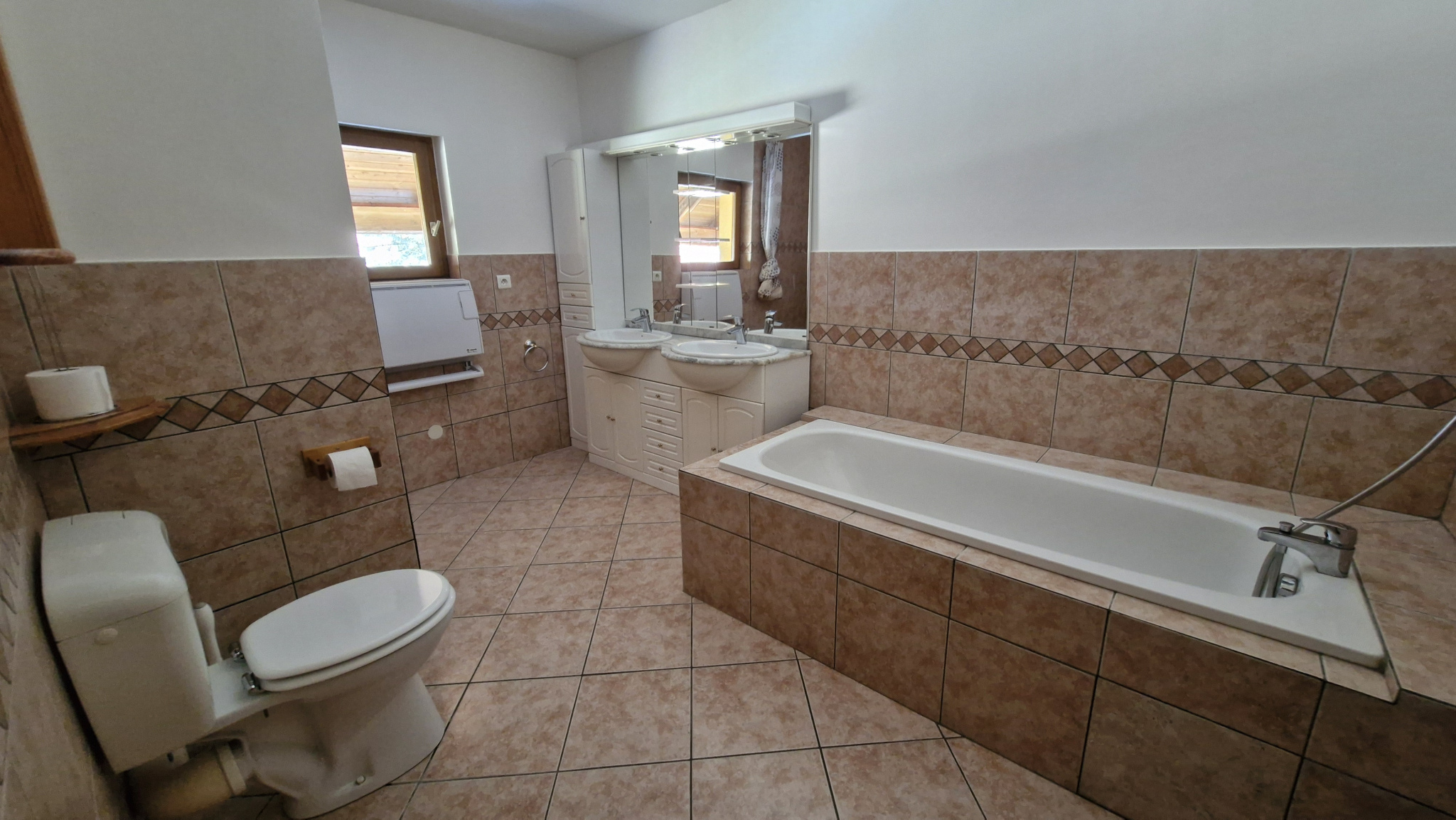 1er étage : Un dégagement, trois chambres, une salle d'eau avec douche, baignoire et WC, un WC séparé, ainsi qu'un grenier.