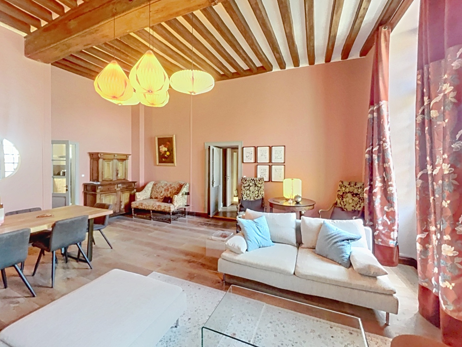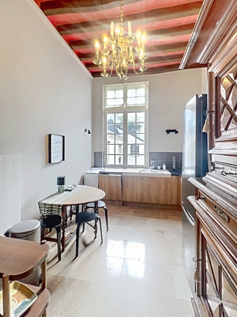 Appartement de standing situé dans un ancien hôtel particulier au centre de la ville de Saumur près de l'église St Pierre devant laquelle se tient le marché principal le samedi matin, et proche des commerces et services. Cet ancien hôtel particulier classé Monument Historique depuis 1926, est divisé en une petite copropriété, et fut construit entre le XVe et le début du XVIIIe siècle.
