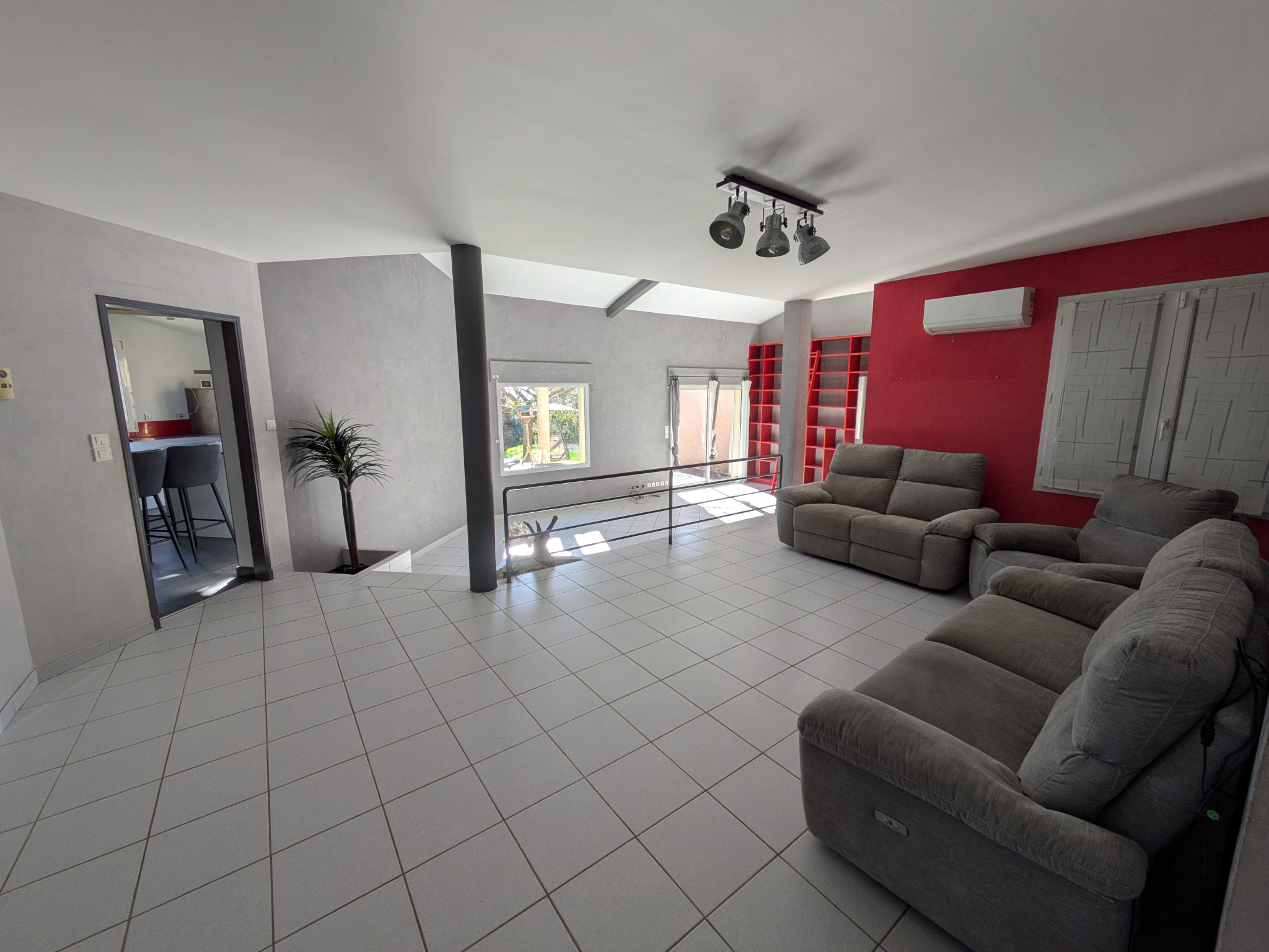 Elle dispose d'un vaste séjour-salon en deux parties pour une surface totale de 57 m2 avec une cheminée moderne et des baies donnant sur une terrasse sud. Très beau volume avec un plafond cathédrale. La cuisine équipée est récente et bénéficie de nombreux meubles de qualité, pour une surface de 22 m2 avec baie donnant sur terrasse. Grande buanderie attenante. On trouve également six chambres avec placards, dont un dressing pour la chambre parentale, une grande salle de bains et une salle d'eau. La maison dispose de caves, d'un petit garage et d'un abri. Le chauffage se fait par pompe à chaleur au sol + climatisations dans les chambres.