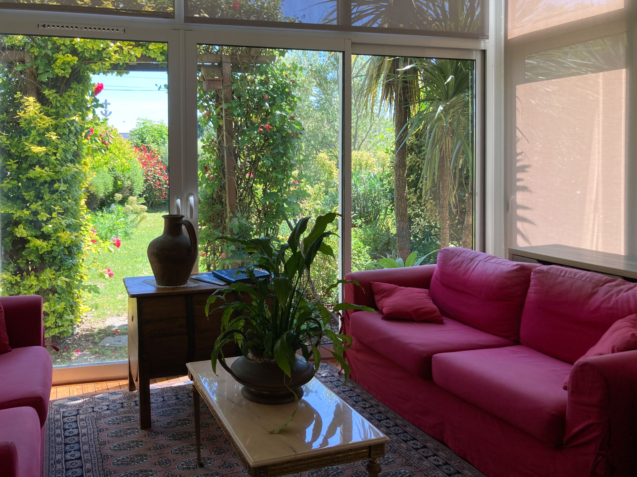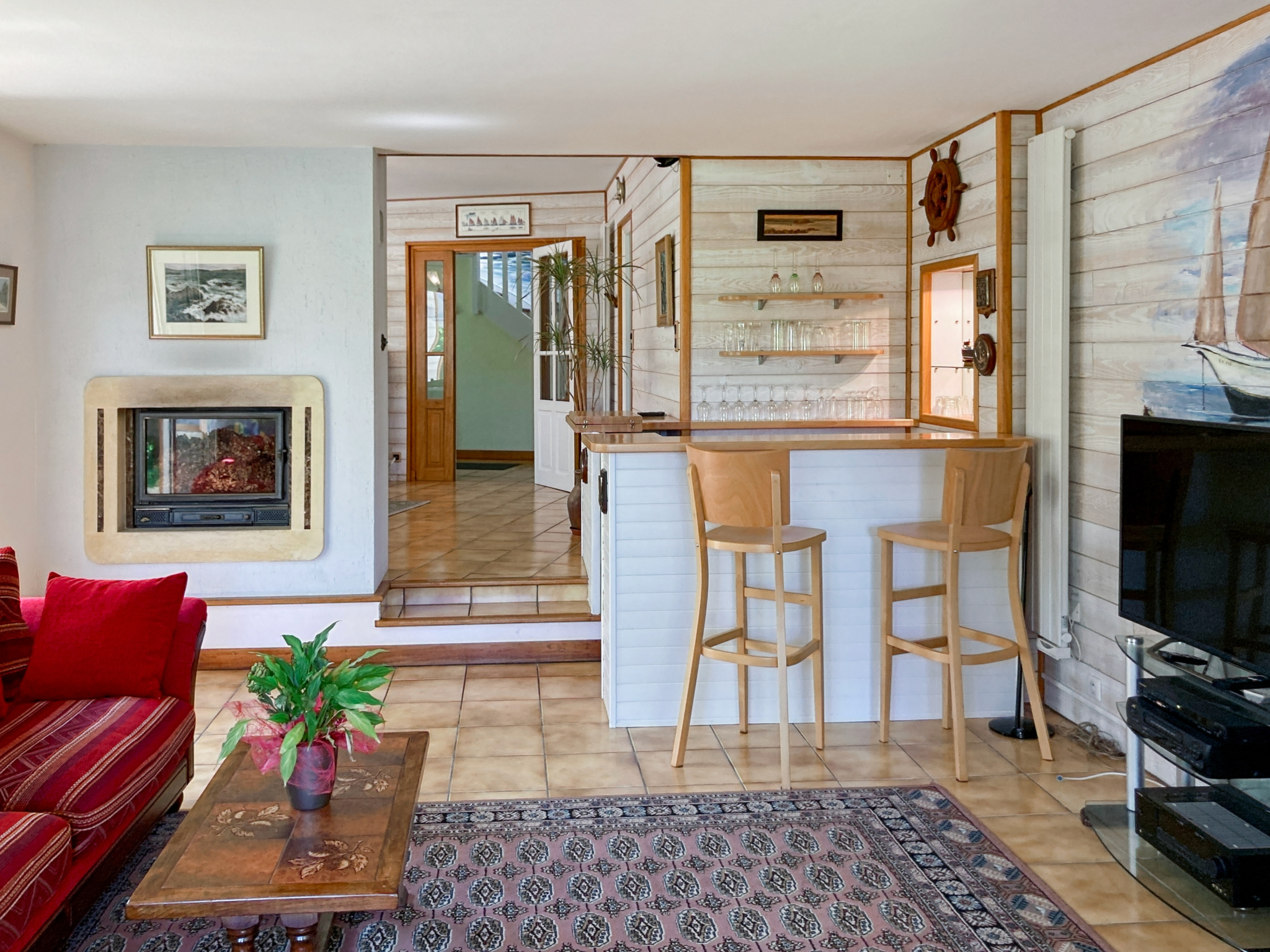 Névez, à moins de 5 minutes de la plage de Tahiti et du GR 34, cette grande maison lumineuse, avec de beaux volumes, est édifiée sur un terrain de 755 m2 entièrement clos et arboré de multiples essences. Au rez-de-chaussée, le vaste séjour-salon de 42 m2, équipé d'une cheminée à insert double face, est prolongé par deux vérandas ouvertes sur le jardin au sud et à l'est ; une cuisine aménagée, une chambre de 13 m2, une salle d'eau. A l'étage, deux chambres et une suite parentale (salle d'eau privative), une salle de bains, un bureau et un dressing. Garage attenant, cave ; abri de jardin en annexe, agréable terrasse à l'ouest surmontée d'un store banne.