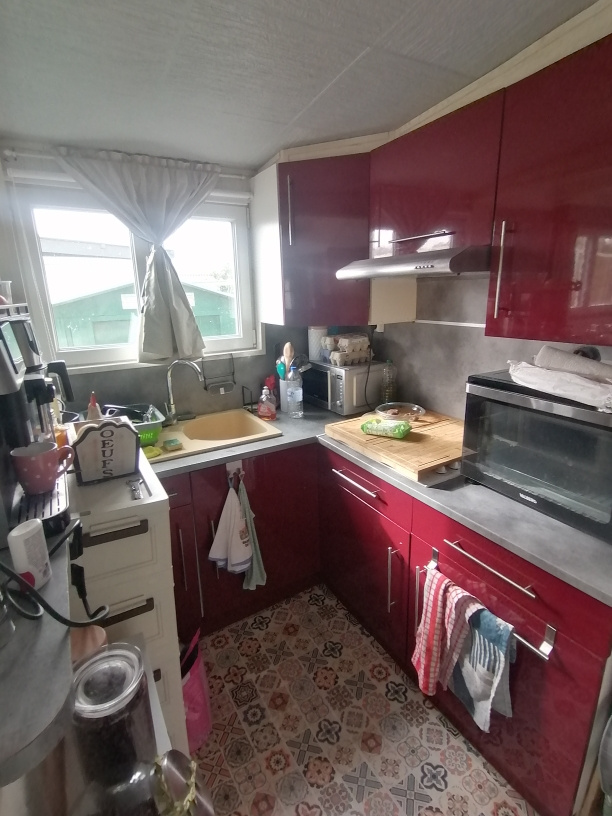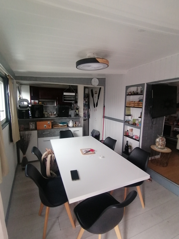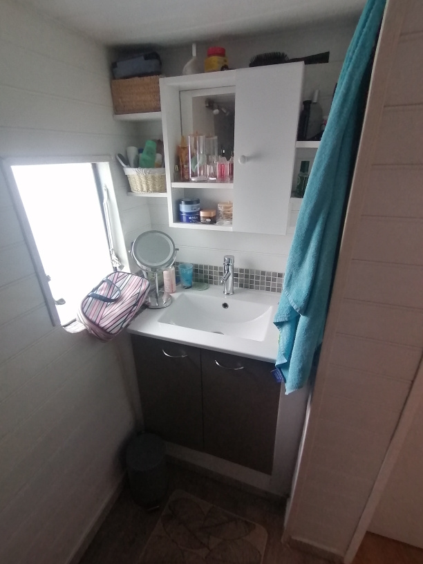 Mobile home avec avancée d'une surface habitable de 45 m2 comprenant un grand séjour, une cuisine entièrement équipée, une chambre, une salle d'eau avec douche, vasque et WC. Il est équipée d'une climatisation réversible. Côté extérieur, vous pourez profiter d'un bar avec cuisine d'été.