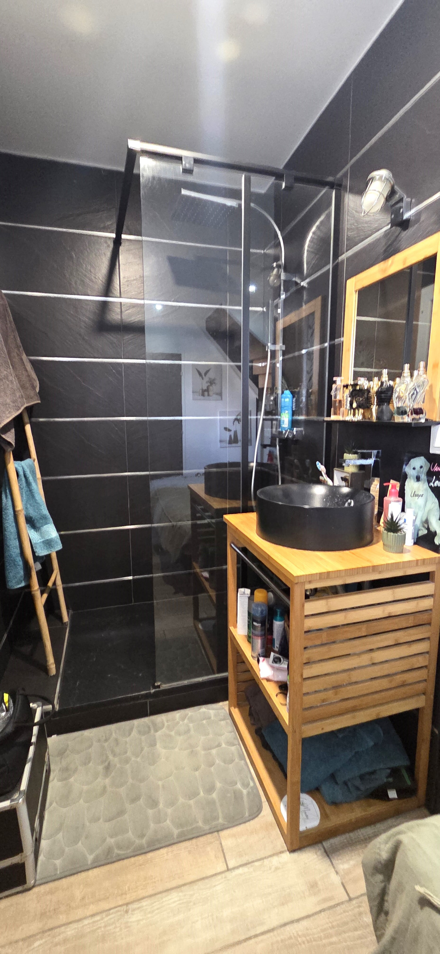 A l'étage, une mezzanine dessert 3 chambres, une salle de bains (douche et baignoire) et WC. Egalement au même niveau, un grand grenier vous servira de rangement.