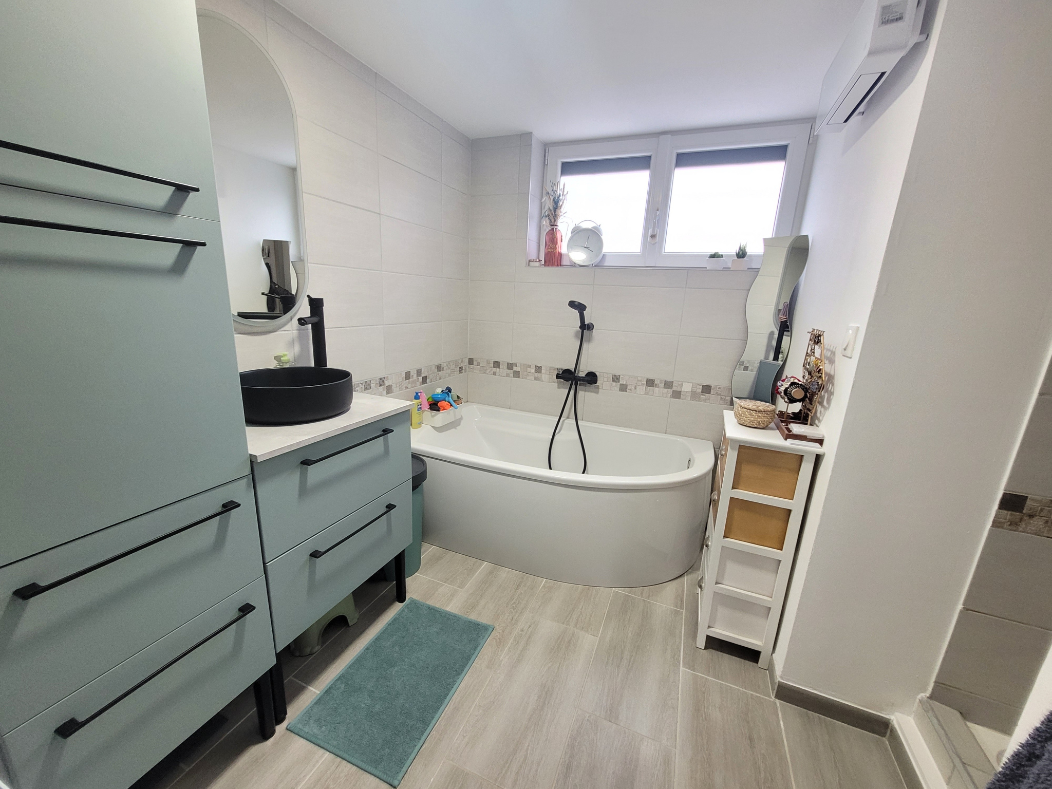 Salle de bain moderne avec douche et baignoire