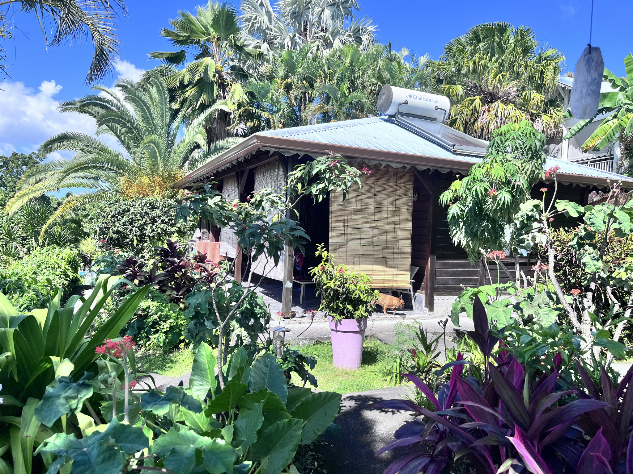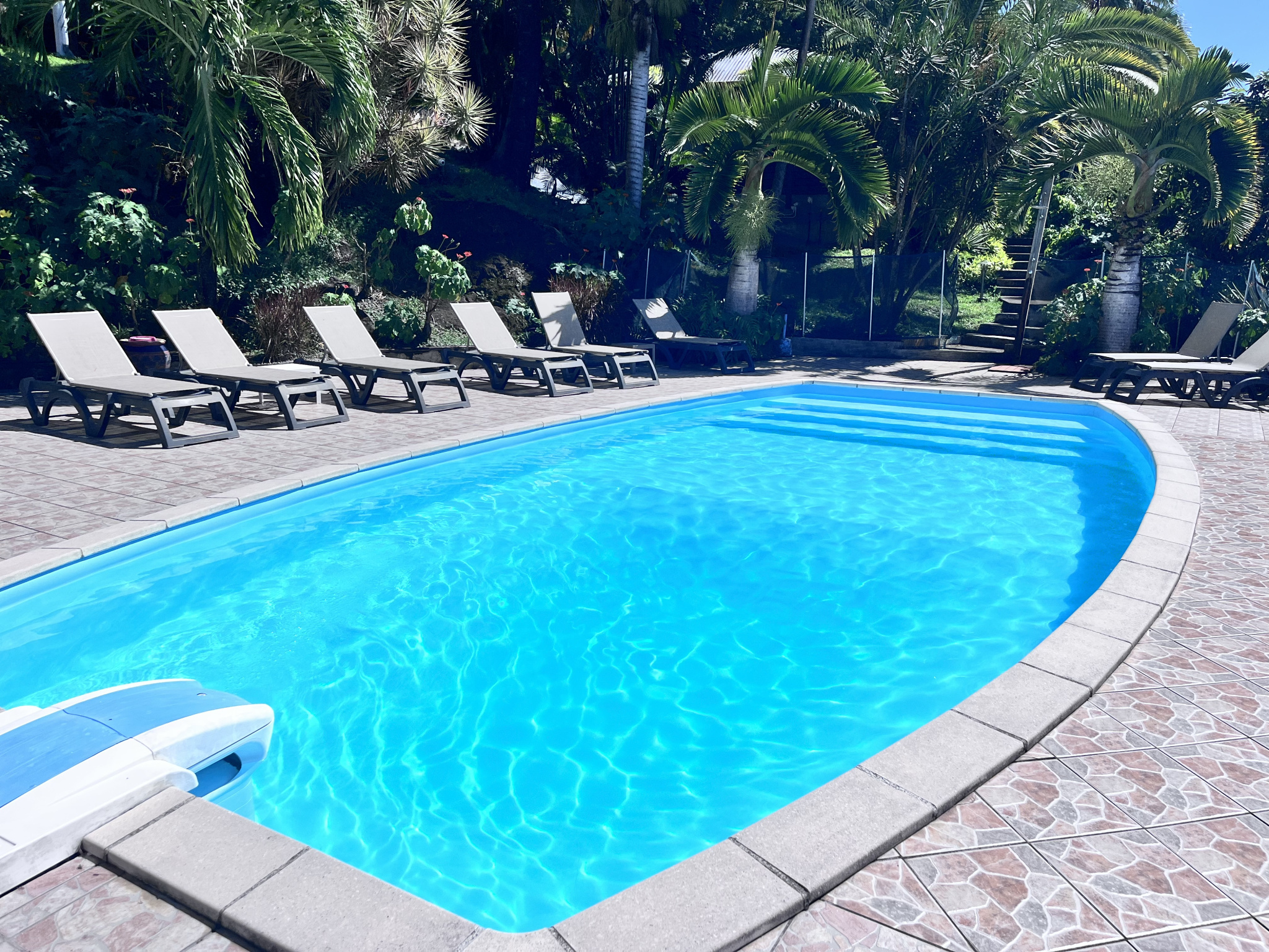 Plus bas, une grande piscine avec vue mer s'intègre parfaitement au décor tropical. Cinq bungalows indépendants en bois rouge, dont un sur pilotis, viennent compléter le domaine. Bien équipés et décorés avec soin, ils séduisent une clientèle française et internationale en quête d'authenticité et de charme créole.